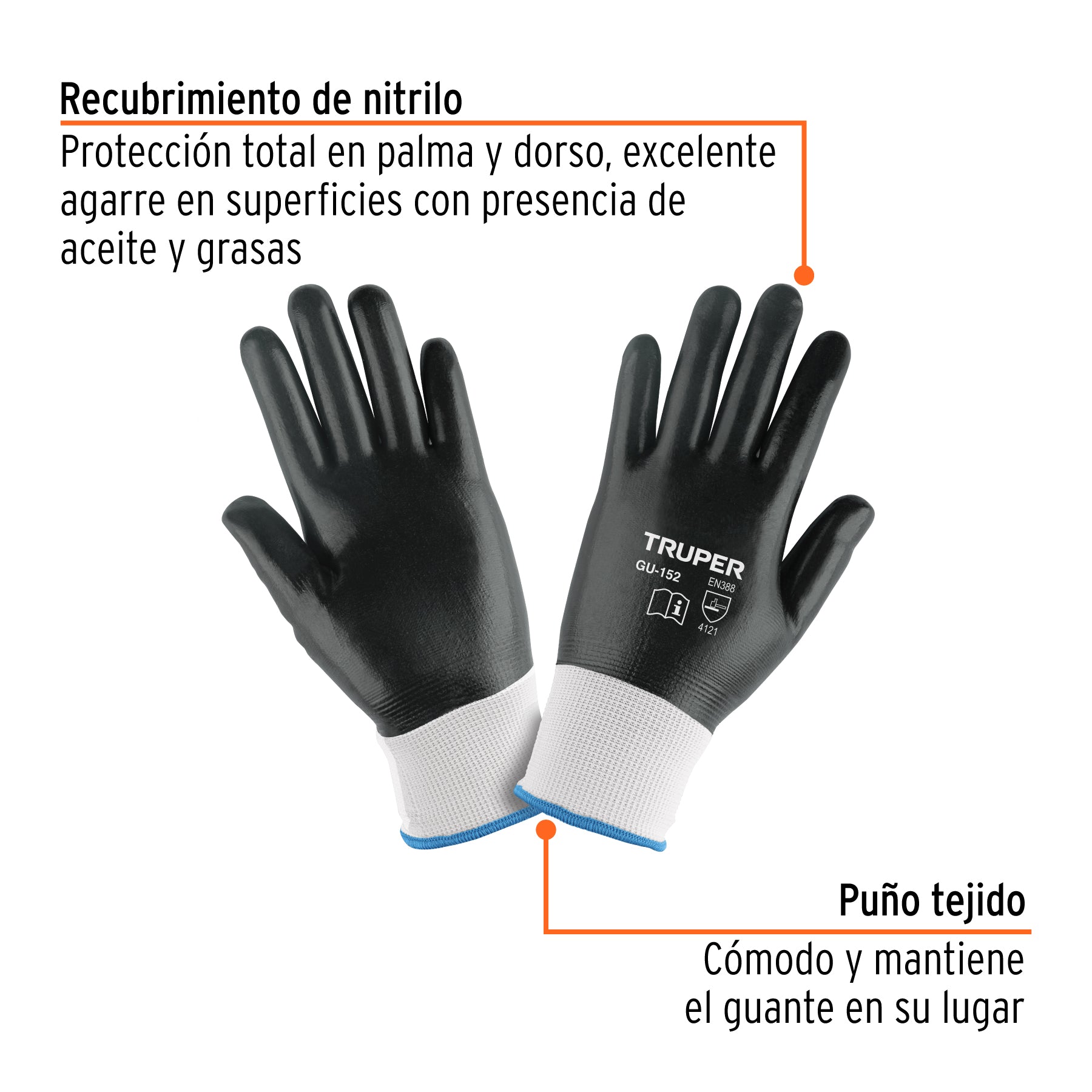 Guantes de Seguridad Industrial TRUPER GU-152 - Nitrilo Resistente a Aceites y Grasas - Talla M - Protección Profesional