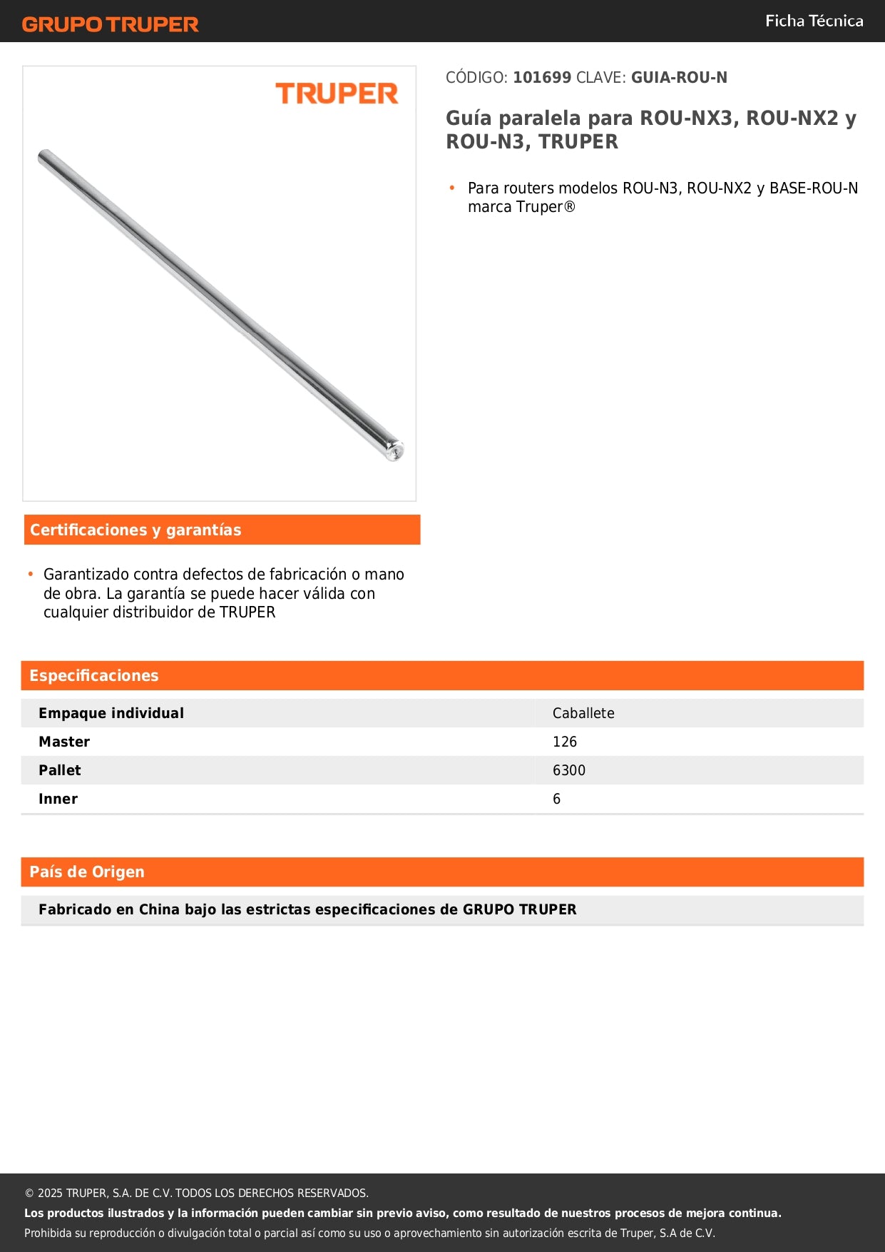 Guía paralela para ROU-NX3, ROU-NX2 y ROU-N3, TRUPER