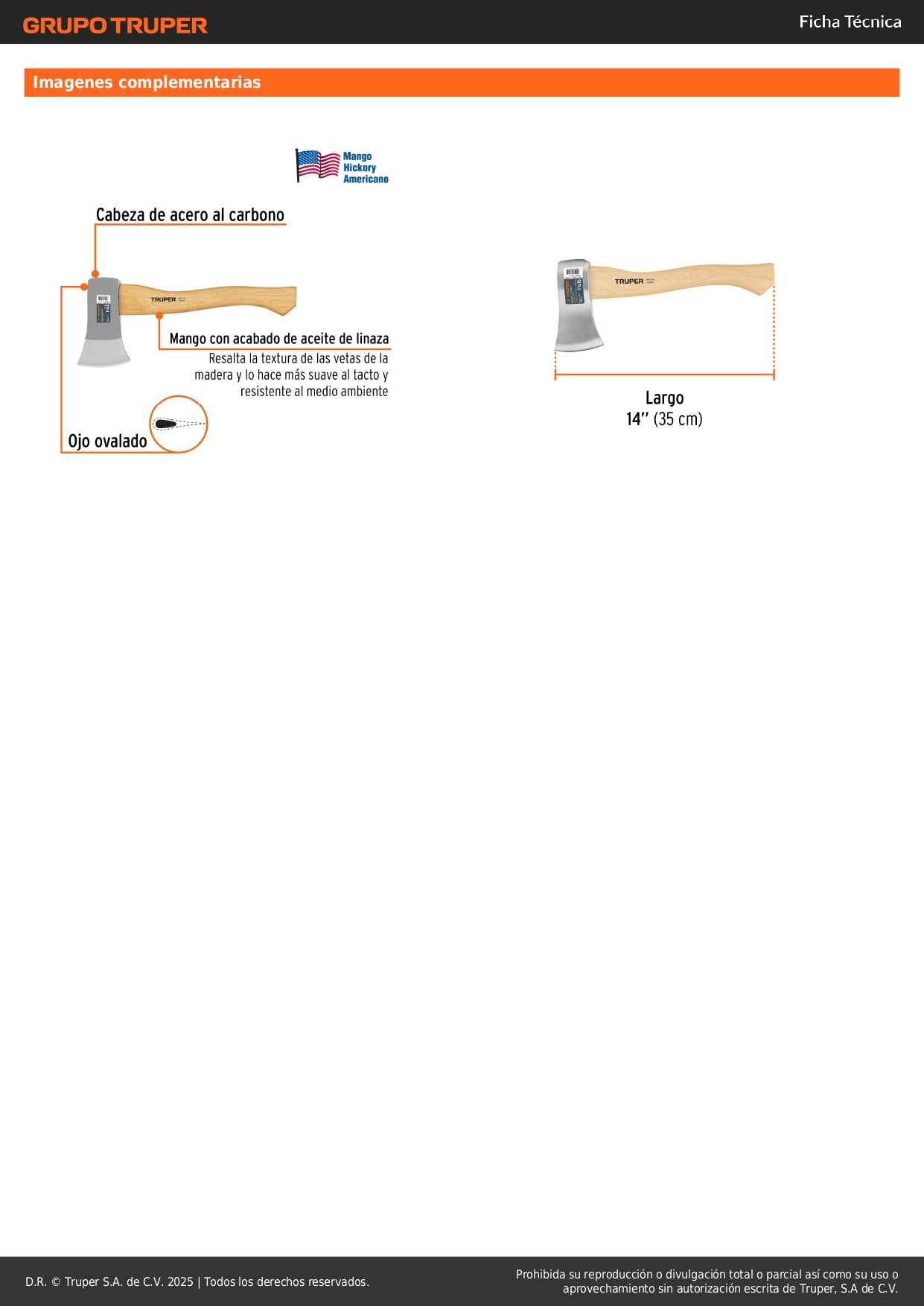 - Mango de madera Hickory de 14 pulgadas - Resistente, ergonómico y absorbe vibraciones