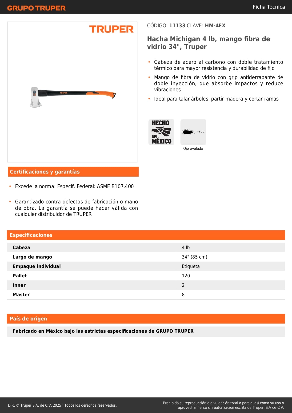 Hacha Michigan Truper 4 lb - Herramienta Profesional de Alto Rendimiento