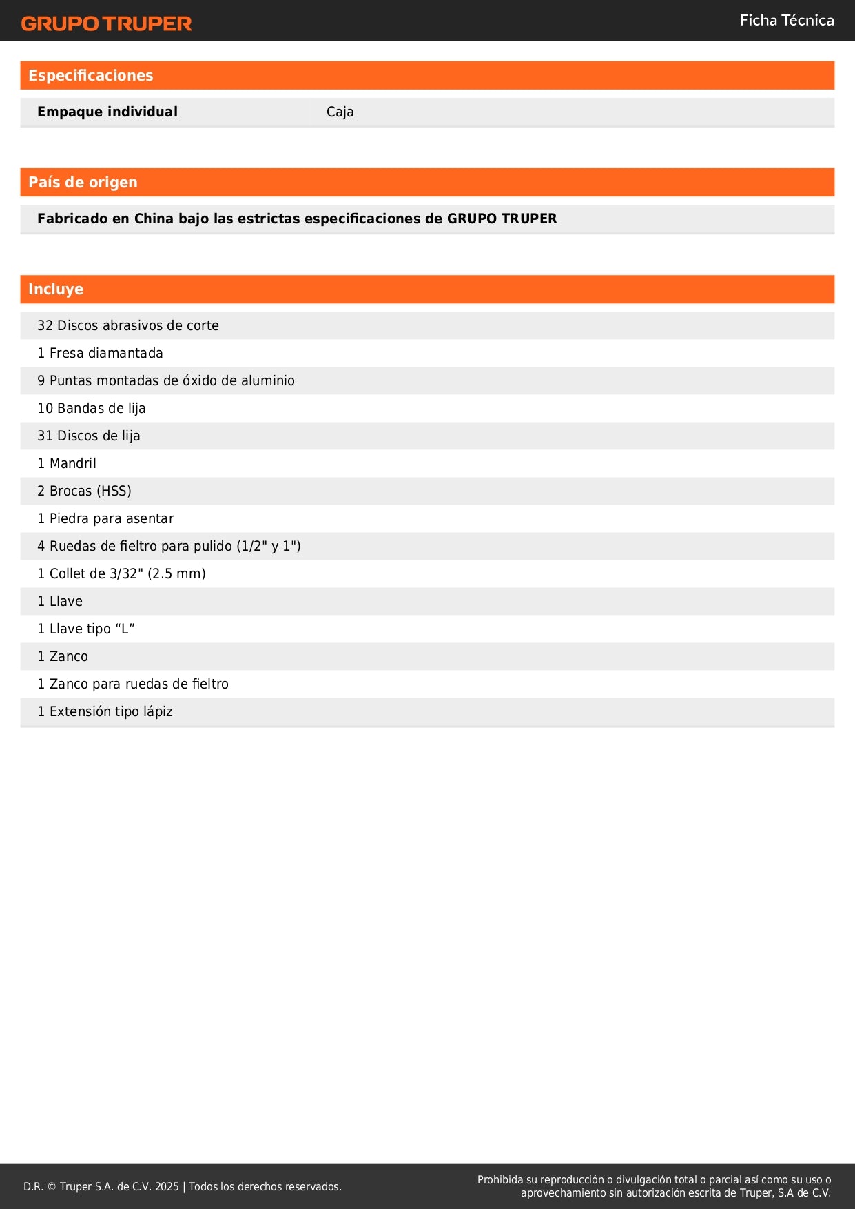Descubre la herramienta rotativa TRUPER PRO de 135W, la solución profesional todo-en-uno para tus proyectos de bricolaje, mantenimiento y reparación. Este mototool multifuncional incluye 97 accesorios premium que te permiten realizar múltiples tareas con una sola herramienta.