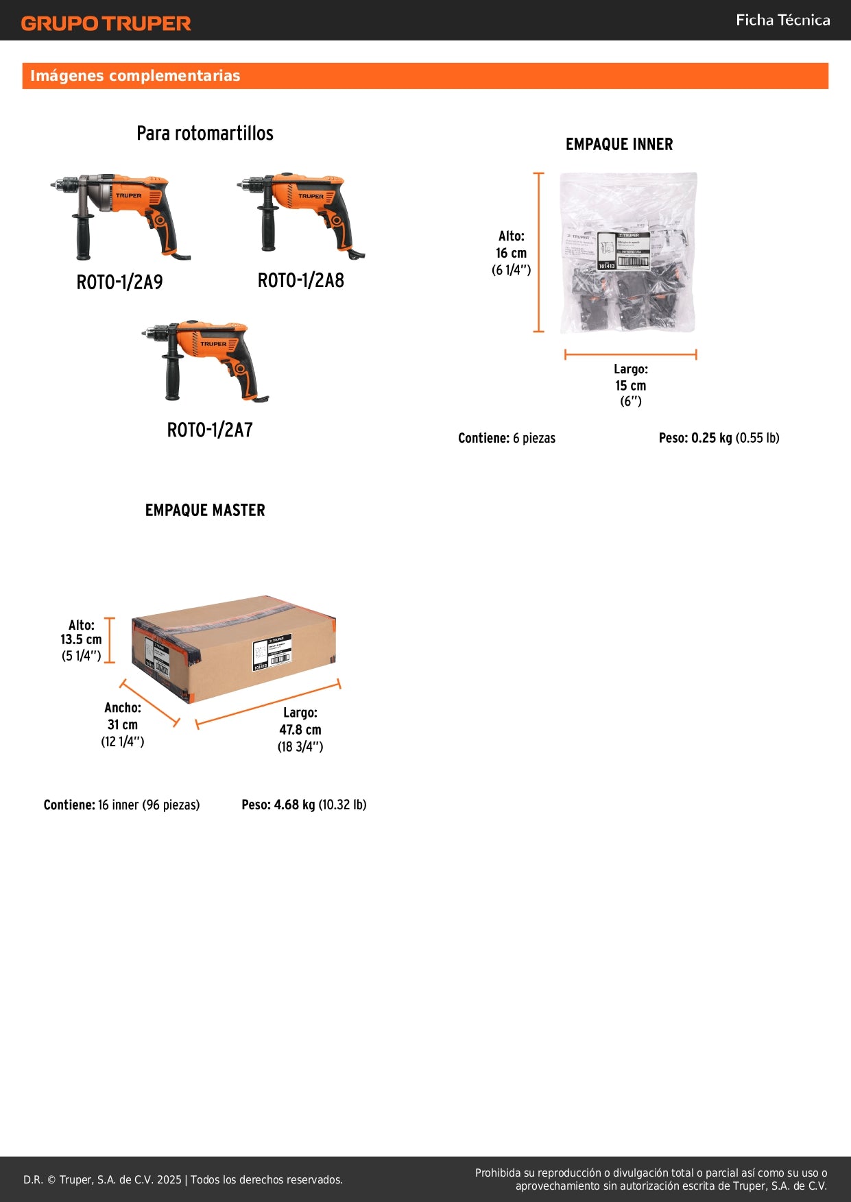 Ideal para mantenimiento preventivo y correctivo de rotomartillos TRUPER en talleres profesionales, construcción, carpintería y trabajos de albañilería. Mantén tu herramienta eléctrica funcionando como nueva con refacciones originales.