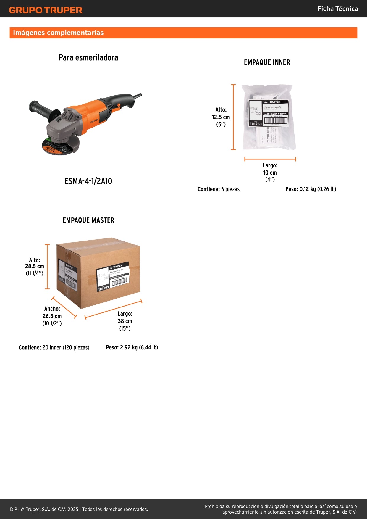 Ideal para talleres mecánicos, construcción, herrería, mantenimiento industrial y trabajos de corte y desbaste que requieren herramientas eléctricas confiables. Mantén tu esmeriladora TRUPER operando como nueva con este interruptor de repuesto original.