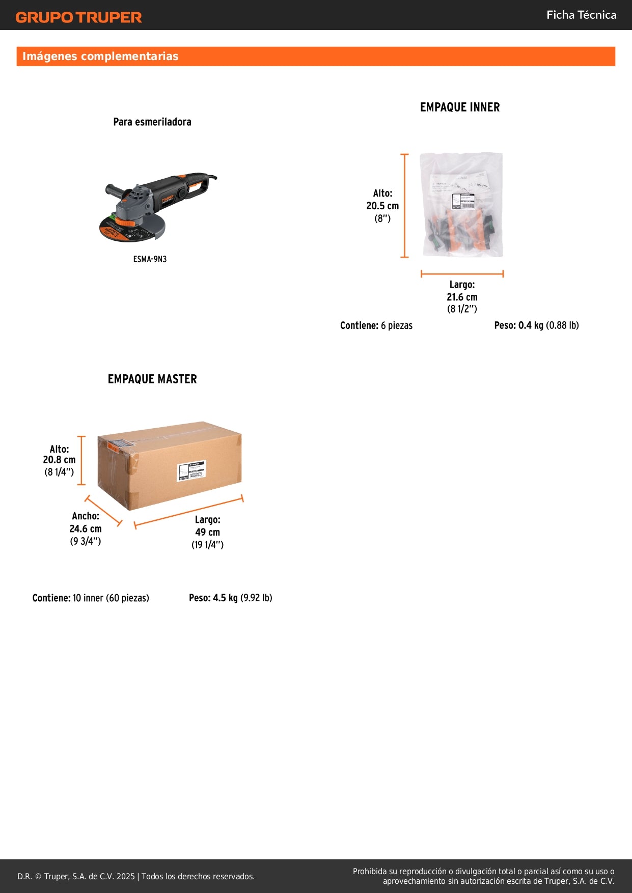 Ideal para talleres profesionales, ferreterías, técnicos en reparación de herramientas eléctricas y usuarios que requieren mantener su esmeriladora TRUPER en condiciones óptimas de funcionamiento.