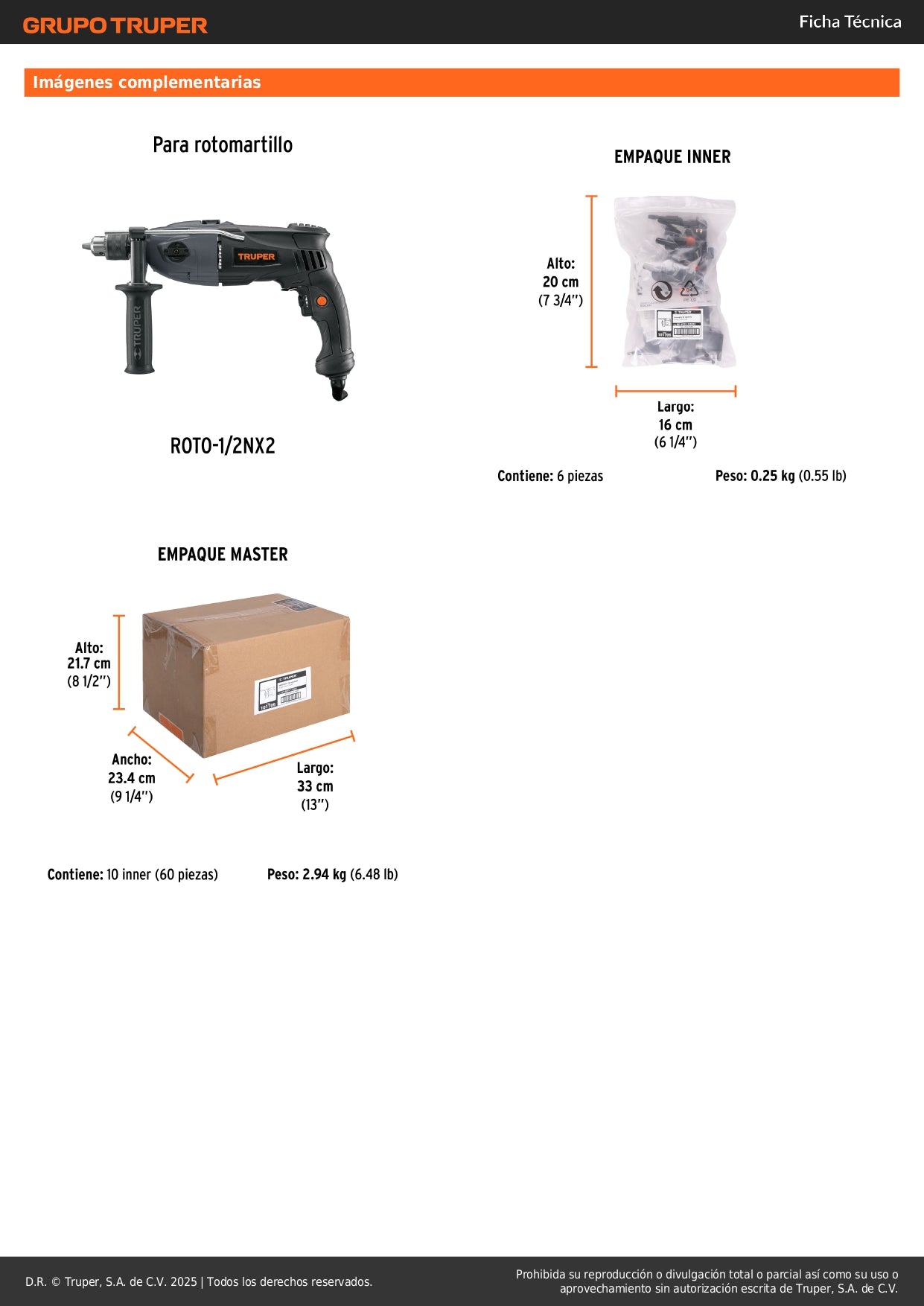 - Compatibilidad: Rotomartillo TRUPER ROTO-1/2NX2