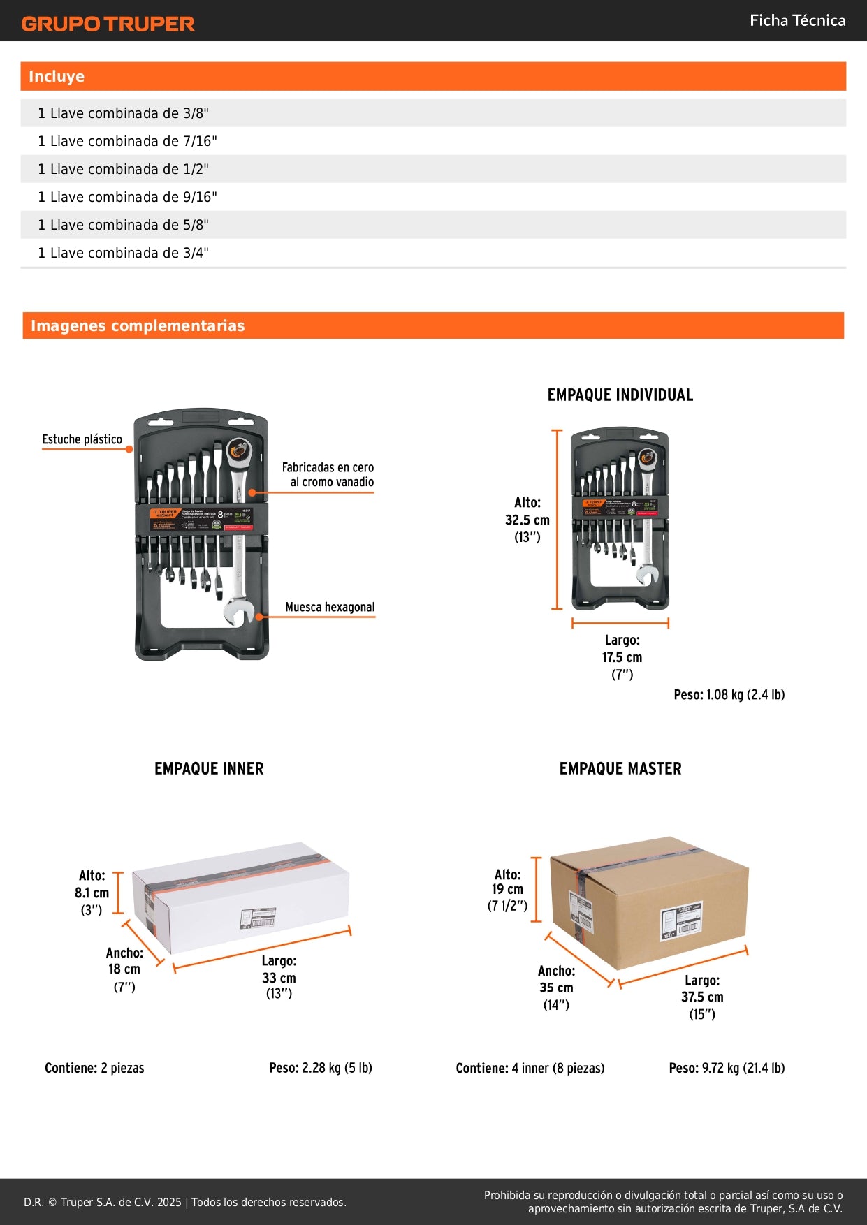 Juego de 8 Llaves Combinadas con Matraca JC-8XP Expert TRUPER®