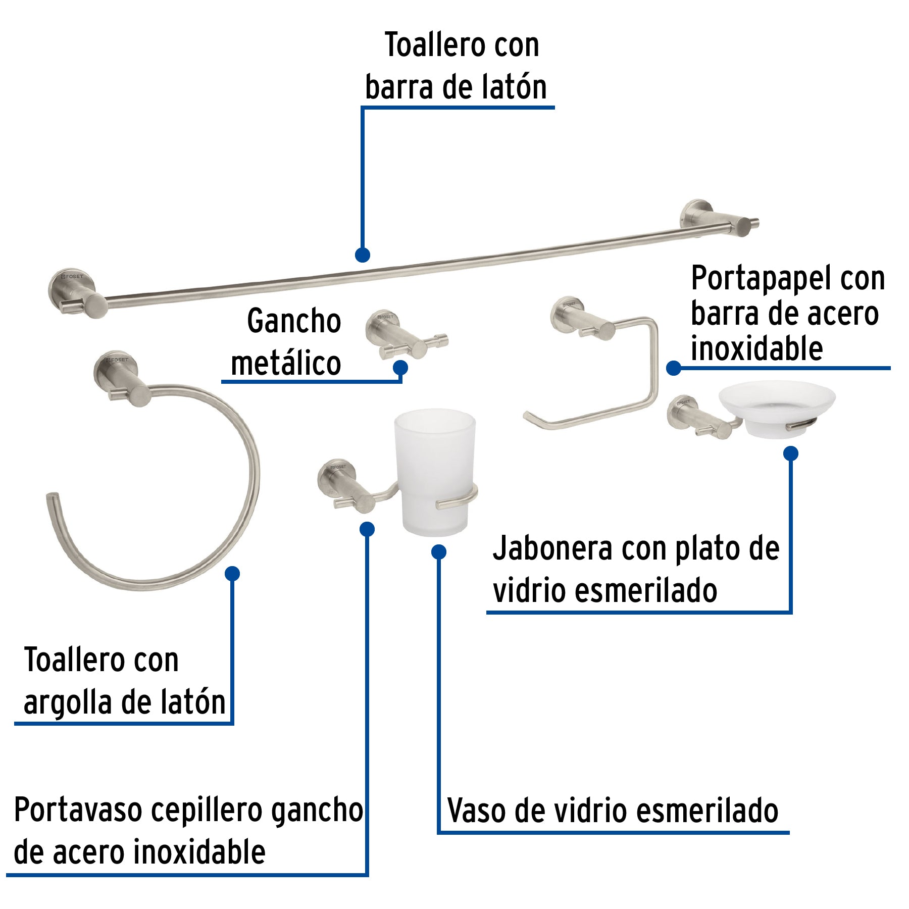 Juego Completo de Accesorios para Baño FOSET ELEMENT ELA-7000N