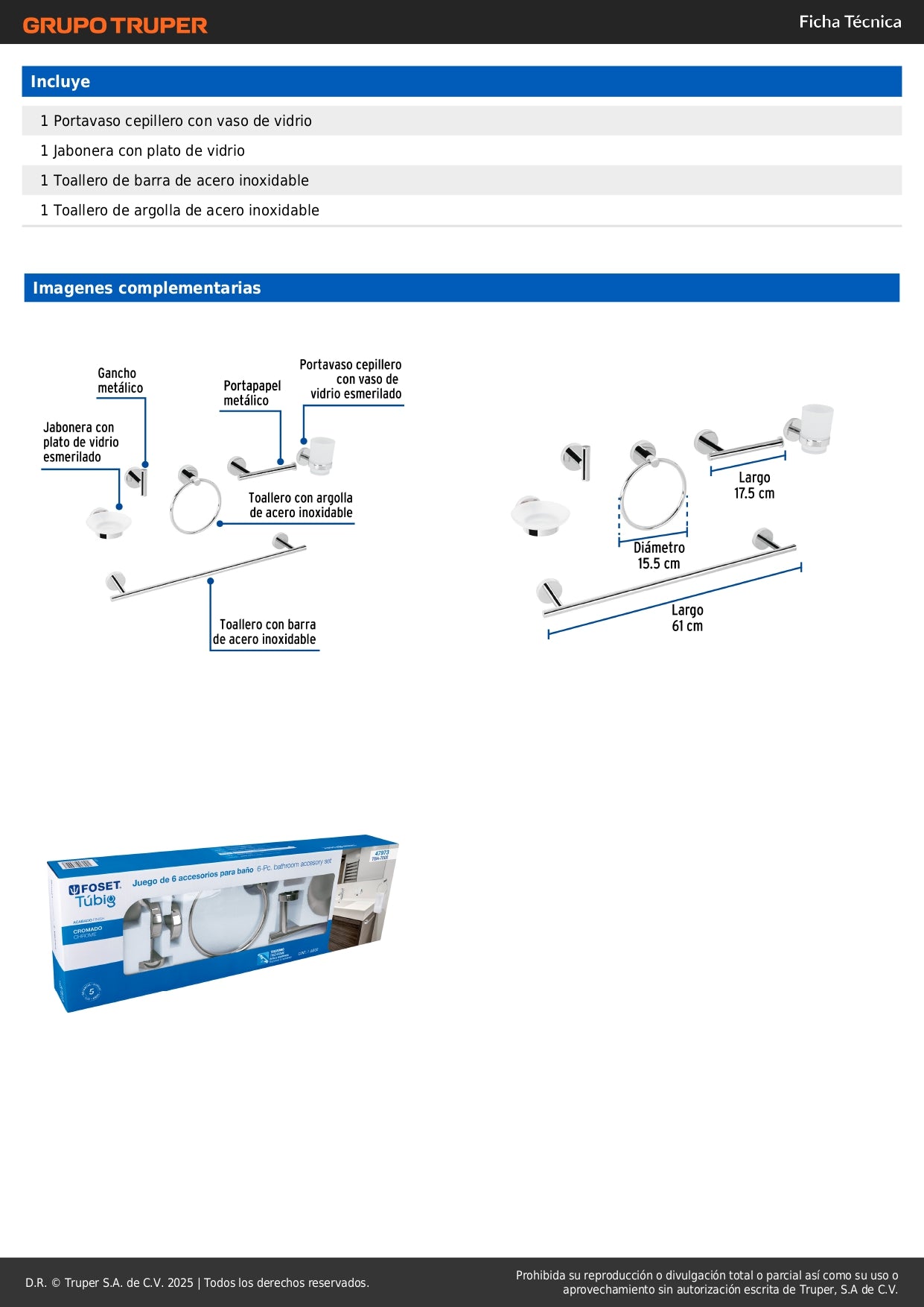 Juego Completo de 6 Accesorios para Baño FOSET TÚBIG TBA-7000