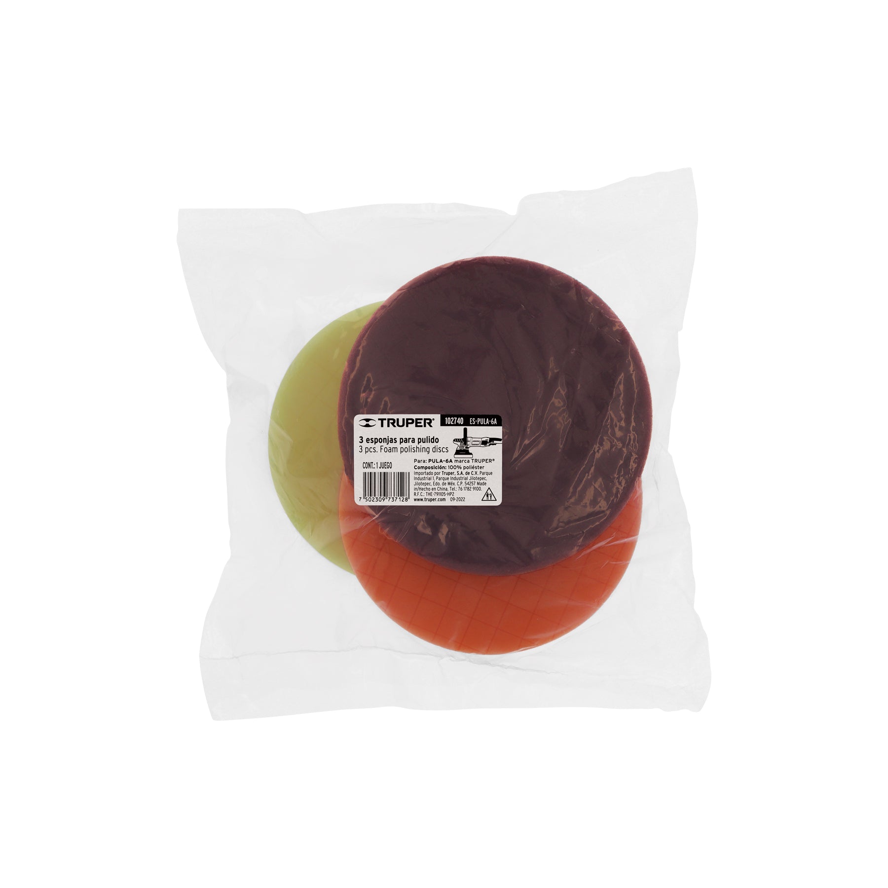Juego de 3 Esponjas para Pulir 6" Hook and Loop TRUPER - Kit Profesional de Pulido