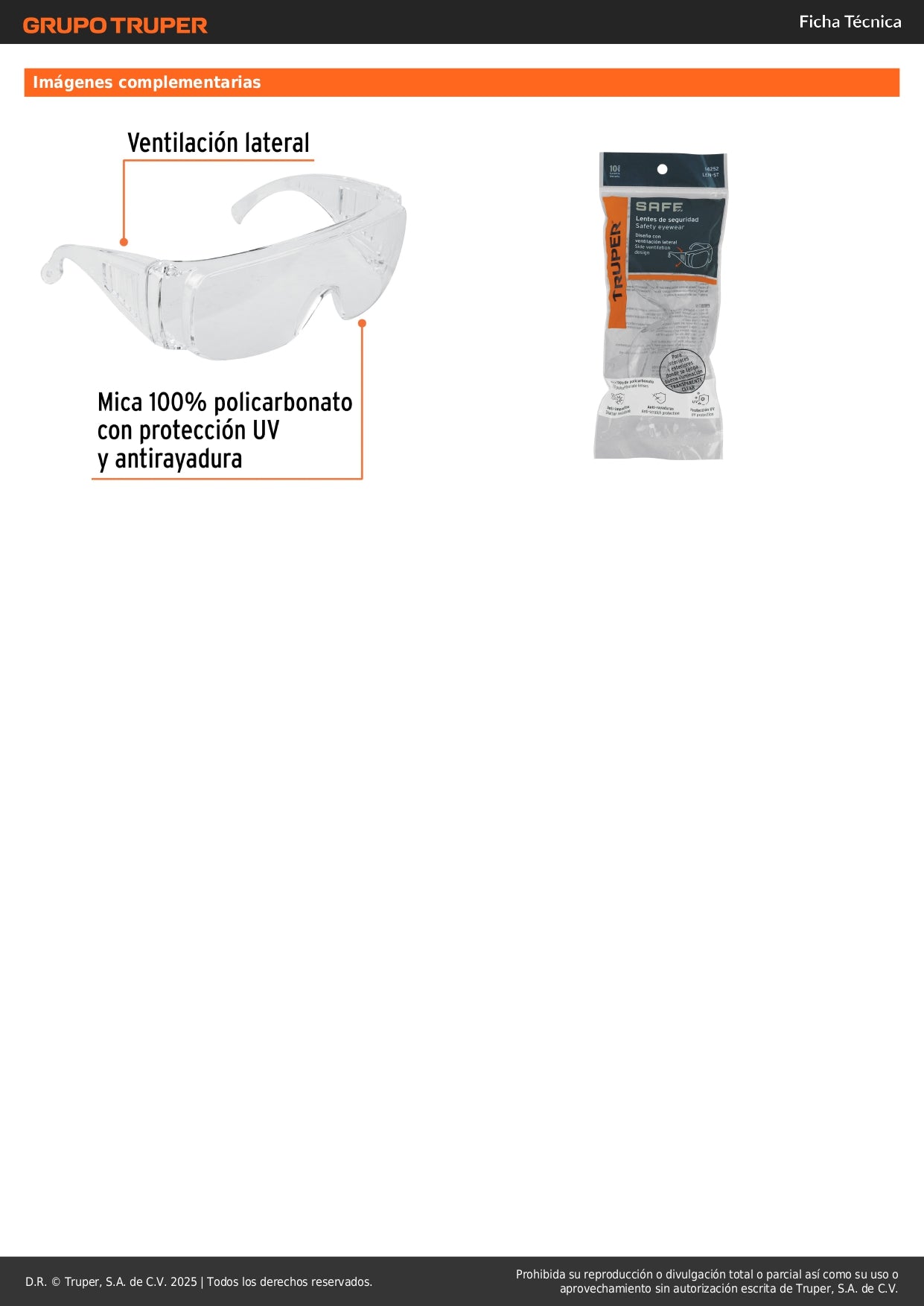 Lentes de Seguridad Transparentes Truper Safe LEN-ST - Protección UV Antirayadura para Industria, Construcción y Taller - Policarbonato Resistente