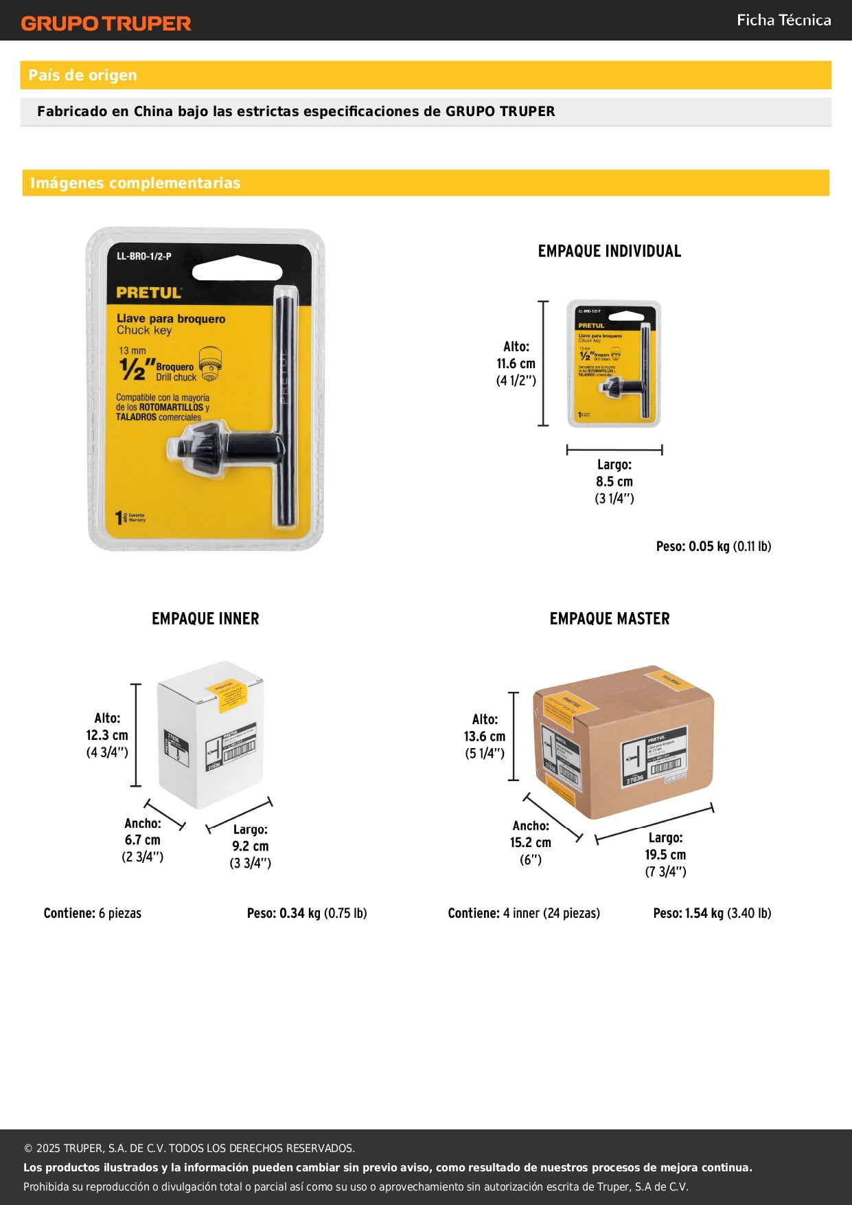 La llave para broquero de 1/2 pulgada PRETUL es una herramienta esencial para ajustar y aflojar broqueros en taladros de columna, taladros de banco y prensas. Fabricada con materiales de alta resistencia, garantiza durabilidad y rendimiento profesional.