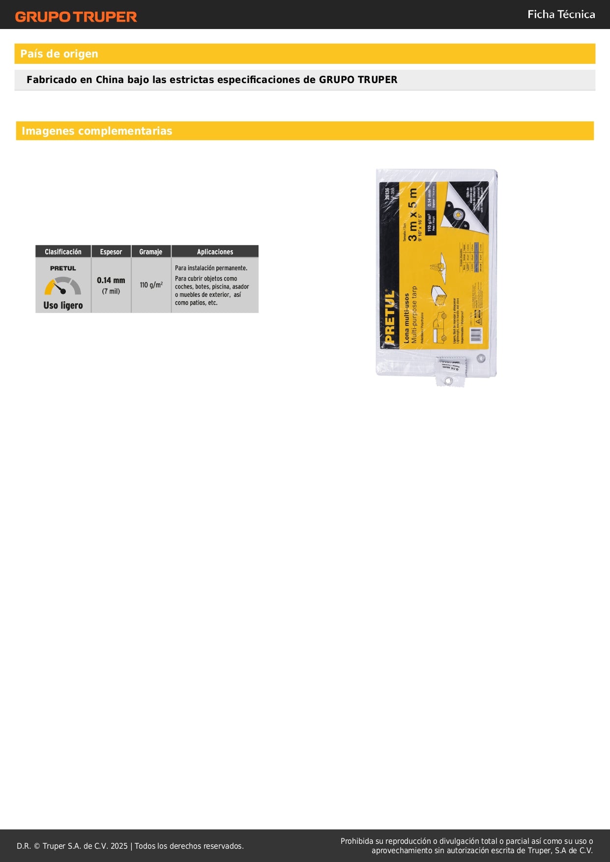 Lona Impermeable PRETUL 3x5m Blanca - Protección Total para Autos, Muebles y Patios - Polietileno Reforzado 110g/m² con Ojillos