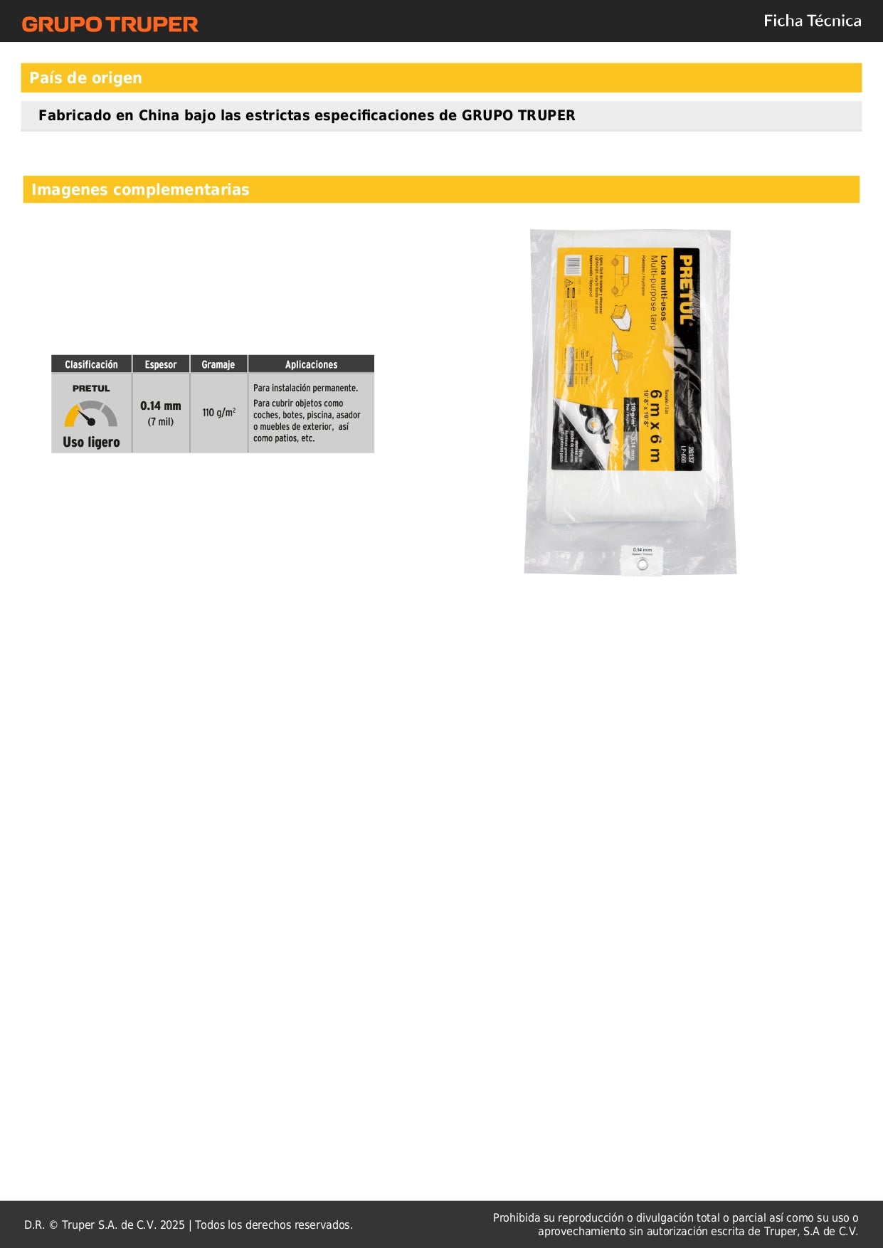 - Material Premium: Polietileno reforzado de 110g/m² - resistente a rasgaduras y perforaciones