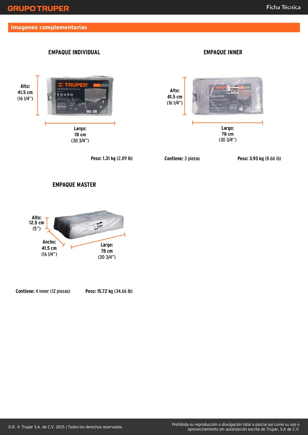 Lona Polietileno Reforzada 2x3m TRUPER LT-23 - Protección UV Resistente Intemperie Gris 180g/m2