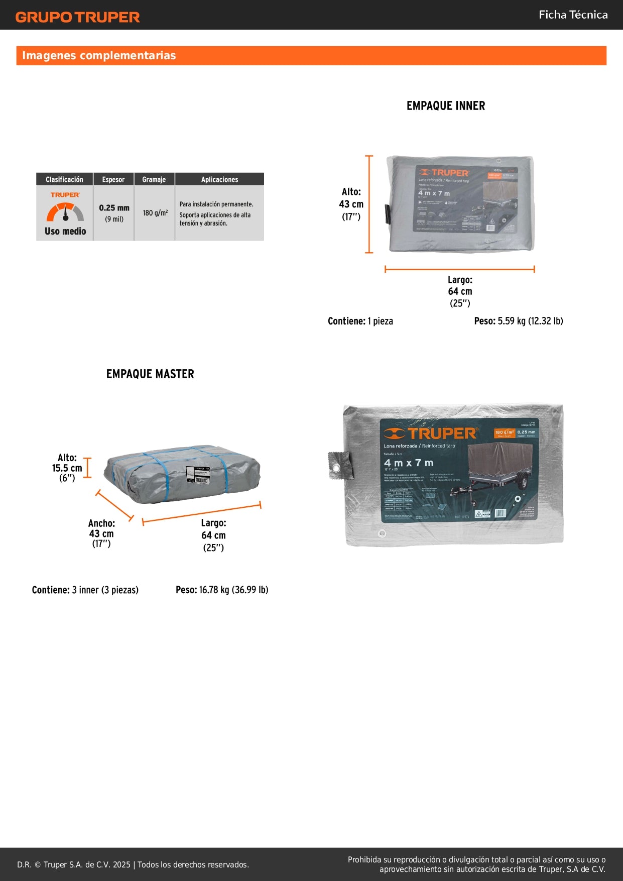 - Dimensiones amplias: 4 x 7 metros - Cobertura ideal para obras, construcción y almacenamiento