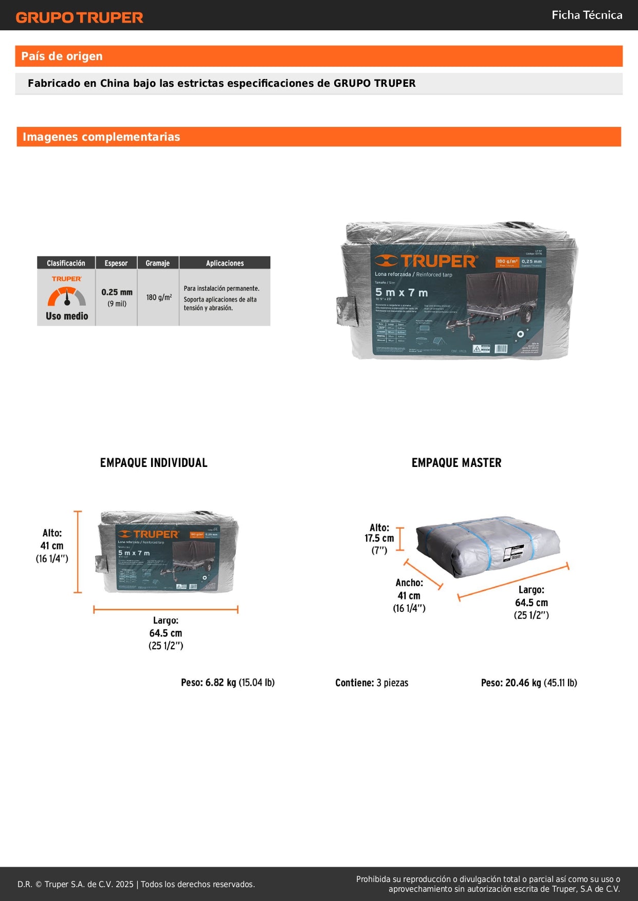 Lona de Polietileno Reforzada TRUPER LT-57 - Protección Profesional 5x7m