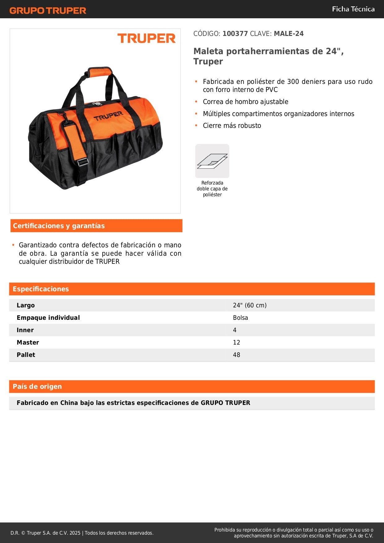 La maleta portaherramientas Truper de 24 pulgadas es la solución perfecta para técnicos, electricistas, plomeros y profesionales que necesitan transportar y organizar sus herramientas de manera eficiente y segura.