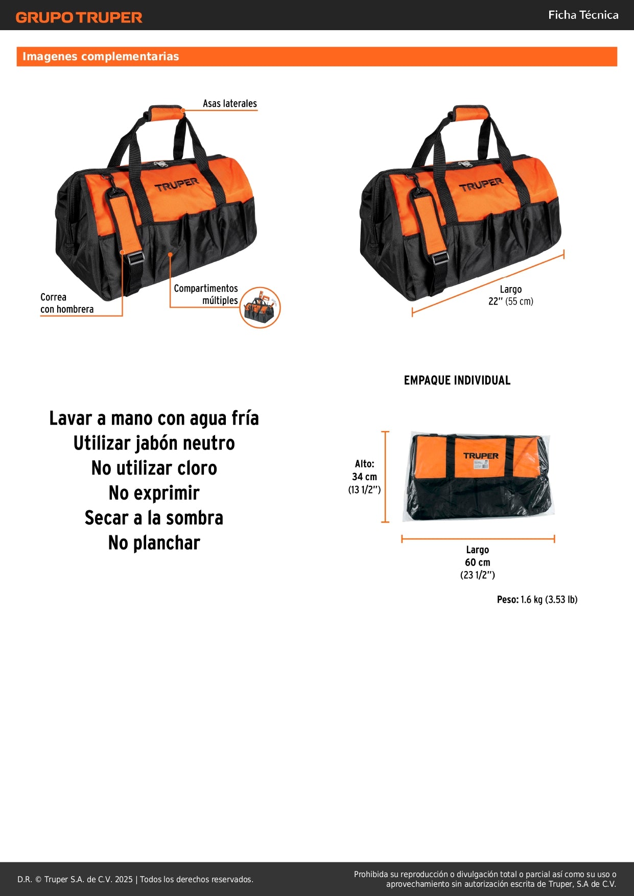 - Compartimentos organizadores: Múltiples bolsillos y divisiones internas para clasificar herramientas