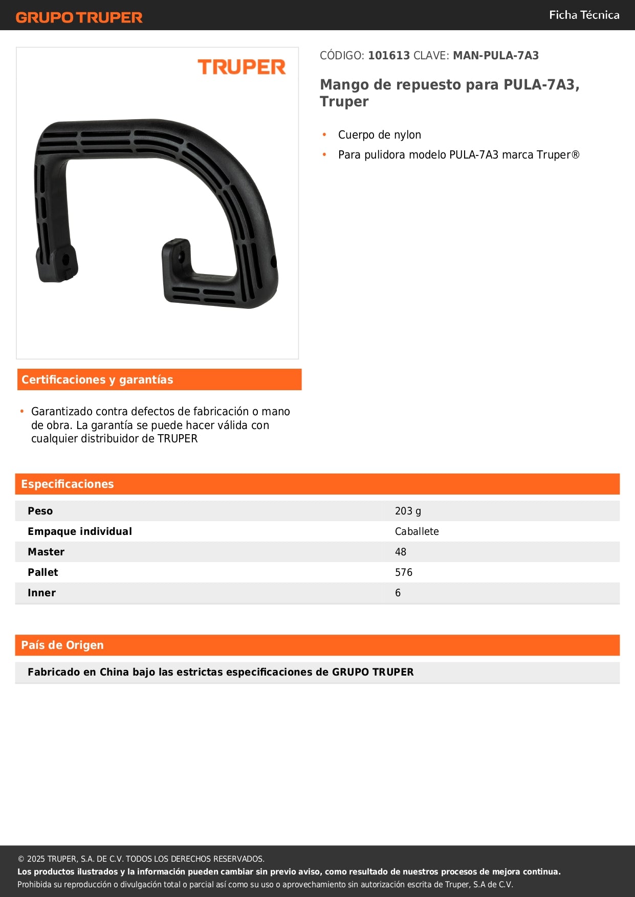 - Compatibilidad: Diseñado para pala PULA-7A3 TRUPER