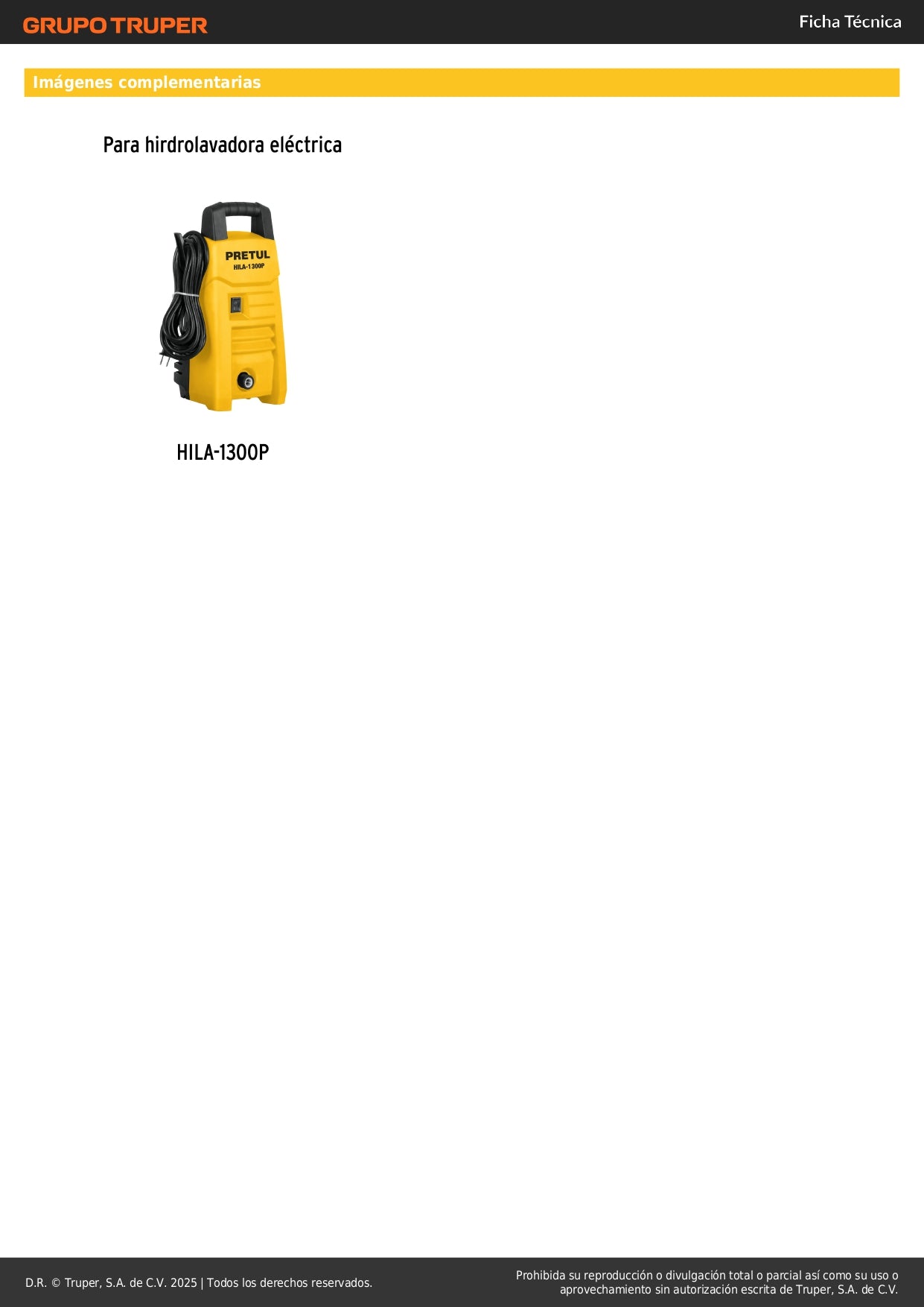 - Compatibilidad garantizada con hidrolavadora Pretul HILA-1300P