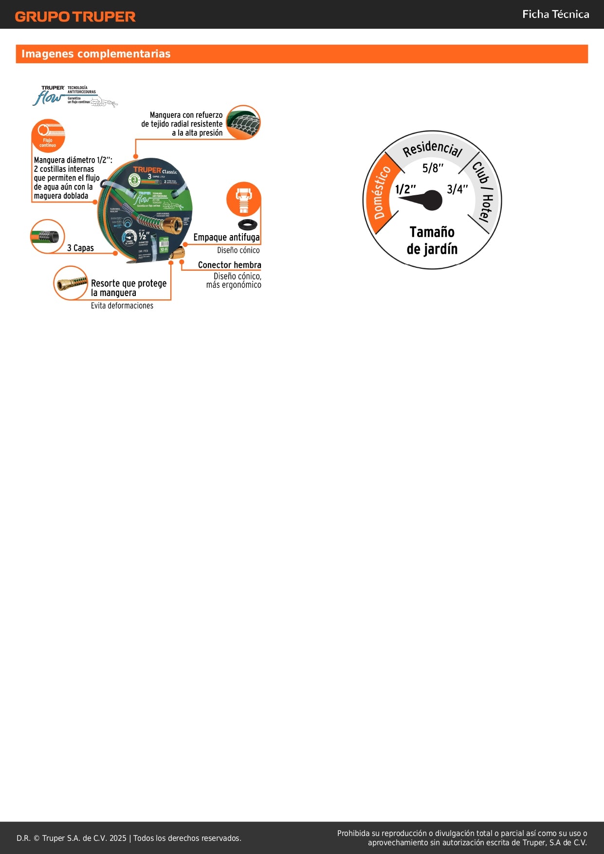 - Sistema anti-dobleces: Construcción de 3 capas que evita torceduras y nudos, garantizando flujo constante de agua