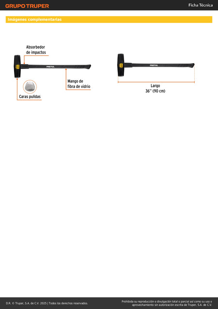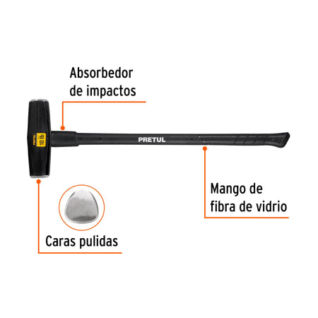 Marro Nevada 10 lbs Mango Fibra Vidrio 36" - Demolición y Golpeo Profesional MD-10MP
