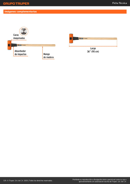 Marro Octagonal 12 lb Truper MD-12M - Herramienta Profesional para Demolición y Golpeo Pesado con Mango de Madera 36 Pulgadas