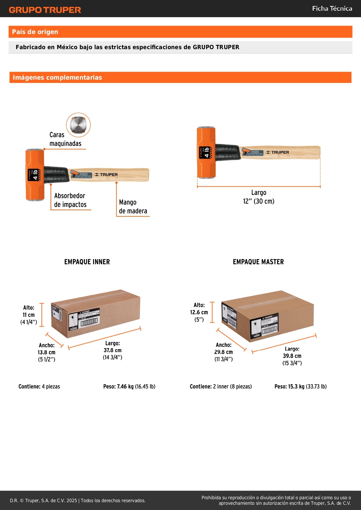 Herramienta de demolición y construcción de alta resistencia diseñada para trabajos pesados. Este marro octagonal Truper combina durabilidad profesional con ergonomía superior.