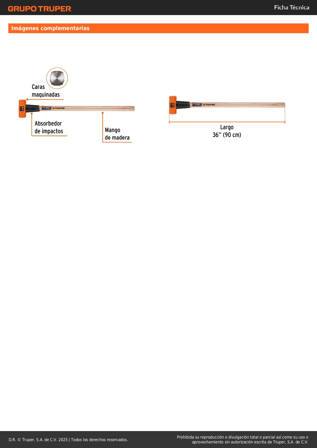 - Cabeza octagonal de 6 lb (2.7 kg) - Fabricada en acero forjado de alta resistencia para máxima durabilidad