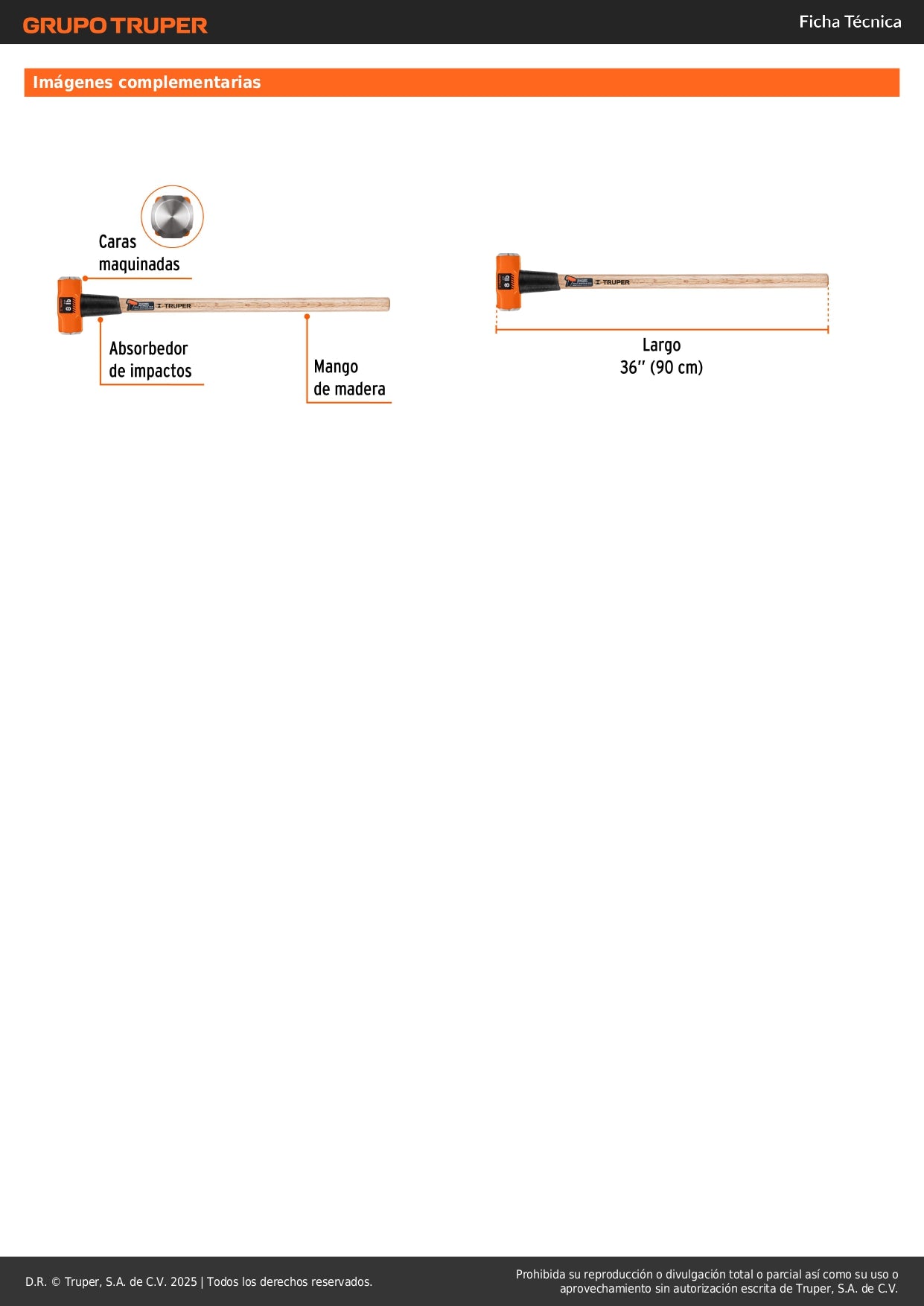 - Cabeza octagonal de 8 lb - Mayor superficie de impacto y estabilidad