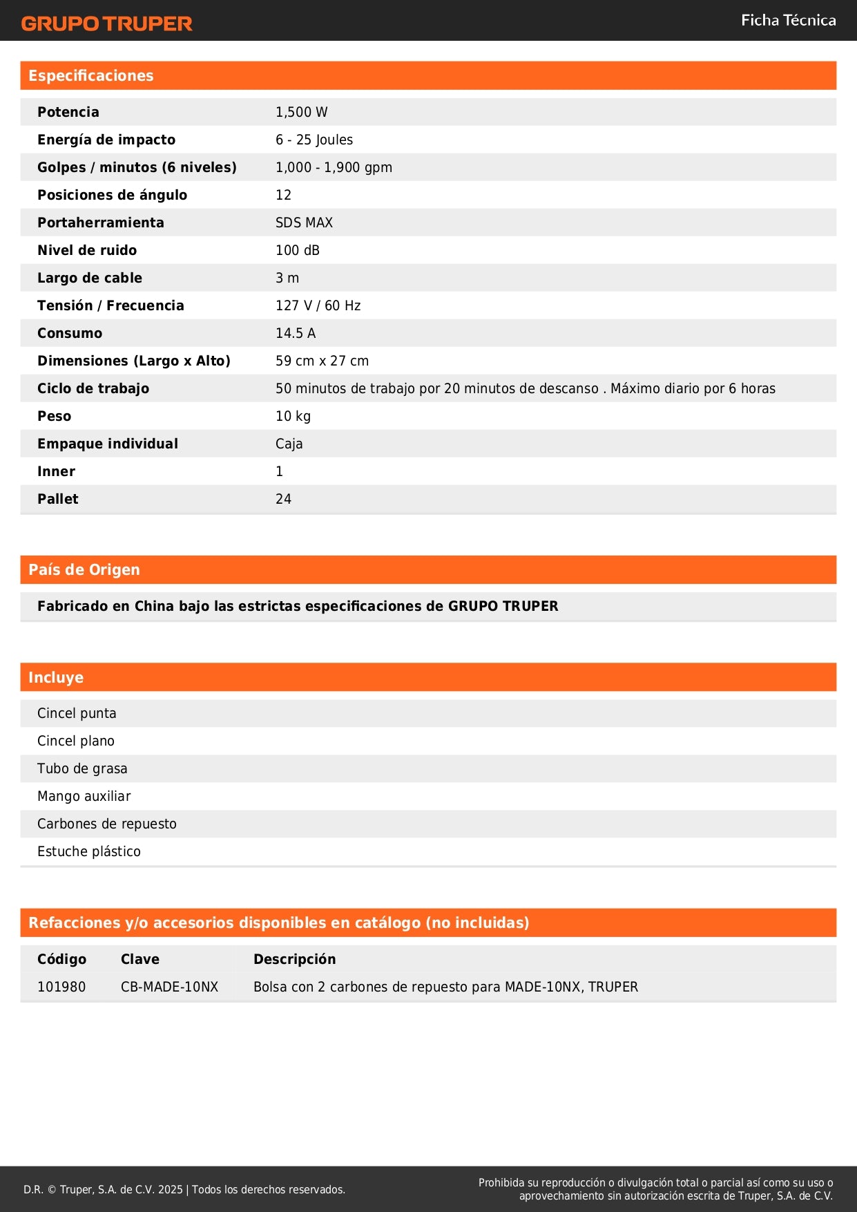 - Alto impacto: 25 joules de energía por golpe