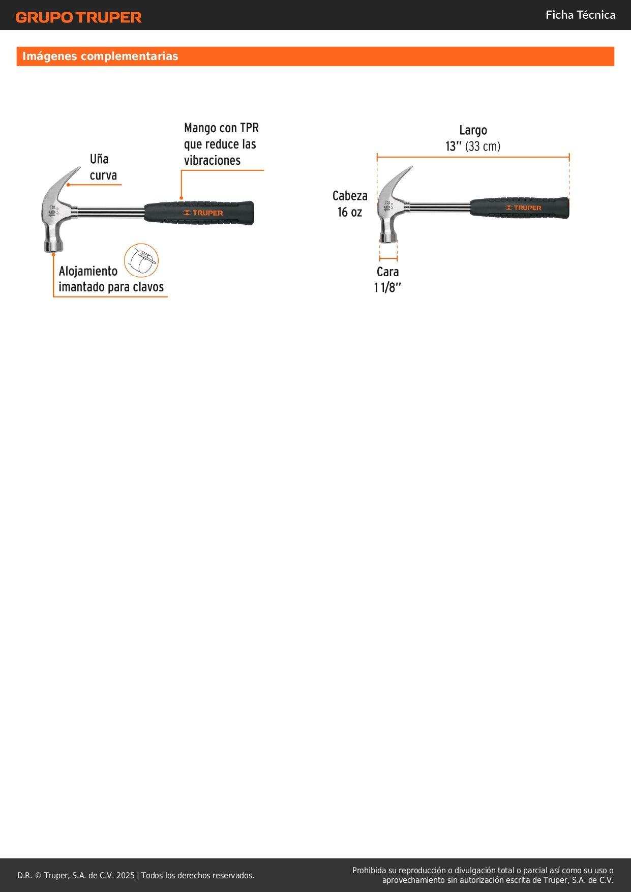 El martillo profesional 16 oz SJ-16 de TRUPER® es la herramienta perfecta para trabajos de carpintería, construcción y remodelación. Diseñado con tecnología anti-vibración, este martillo de uña curva garantiza máxima comodidad y precisión en cada golpe.