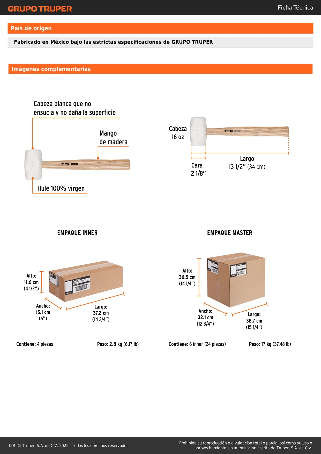 El mazo de hule Truper MH-16 de 16 onzas es la herramienta ideal para trabajos que requieren precisión y cuidado de superficies. Su cabeza de hule de alta calidad protege materiales delicados sin dejar marcas ni daños.