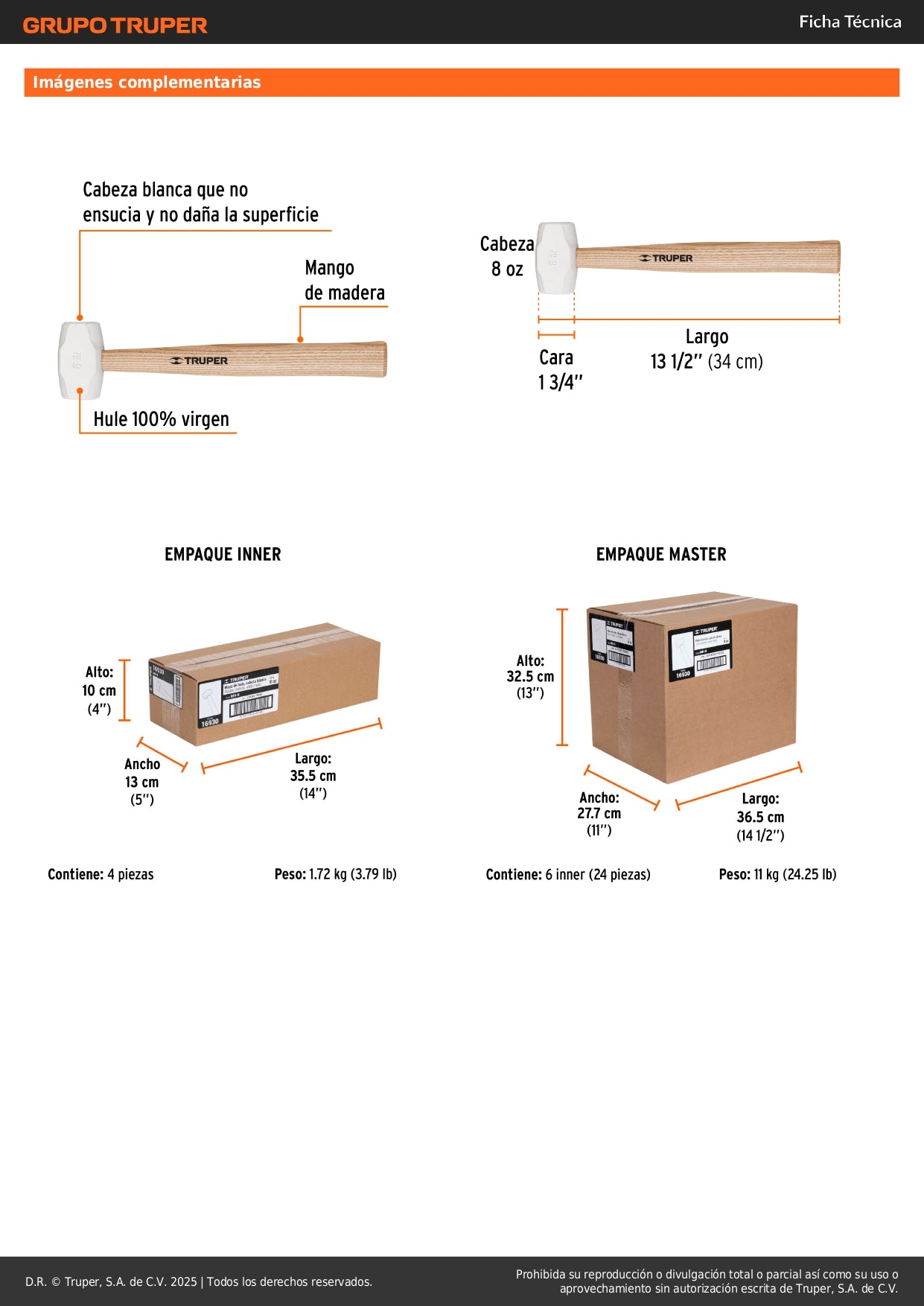 - Cabeza de hule de alta calidad - absorbe impactos y protege materiales