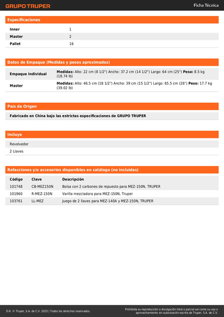 ✓ Compra Segura ✓ Envío Rápido y Rastreo en Tiempo Real ✓ Garantía Oficial Truper® ✓ Paga a Meses sin Intereses con Mercado Pago, Aplazo o Kueski Pay: