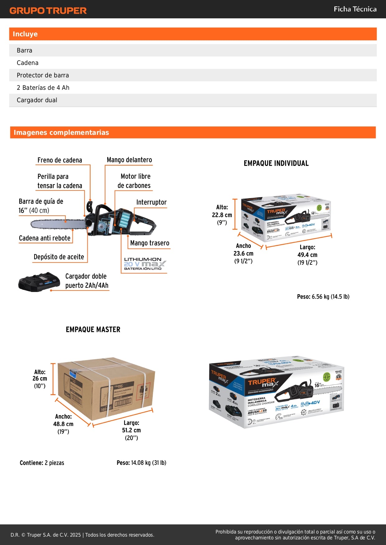 Motosierra Inalámbrica 40V TRUPER MAX-40M - Potencia Profesional Sin Cables