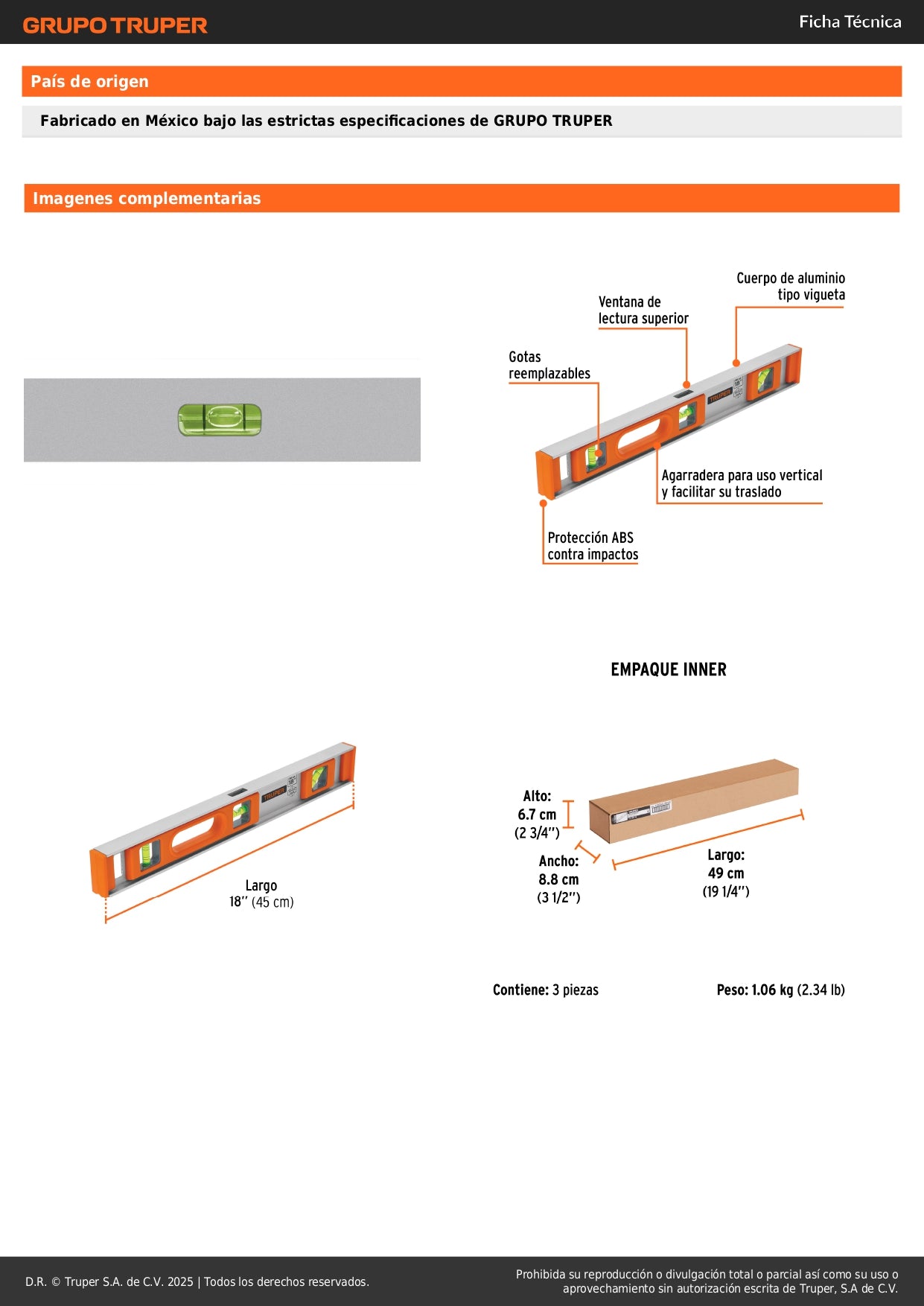Nivel Profesional Truper 18 Pulgadas - Precisión Garantizada