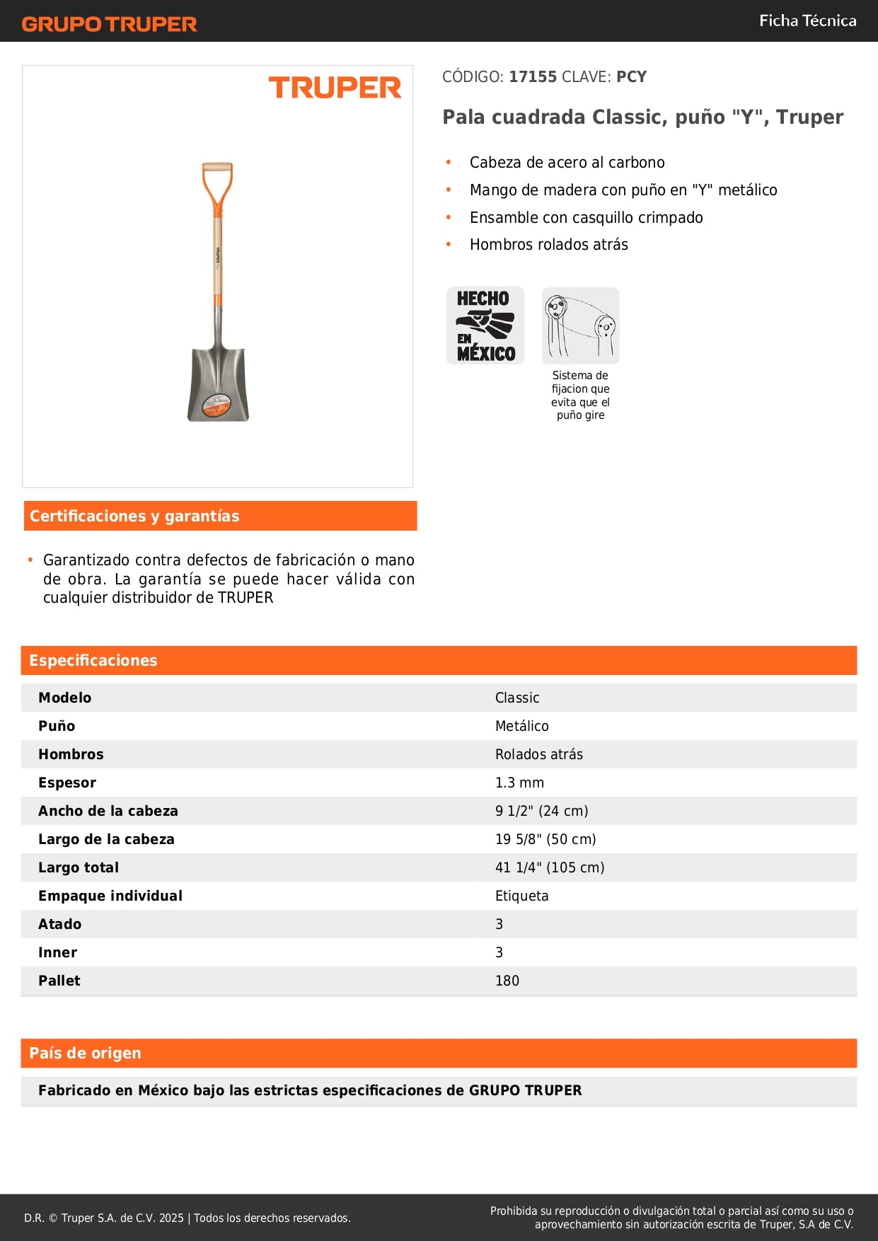 La Pala Cuadrada Truper PCY es la herramienta ideal para trabajos de excavación, jardinería y construcción. Fabricada con acero al carbono de alta resistencia, garantiza durabilidad y rendimiento profesional en cada uso.