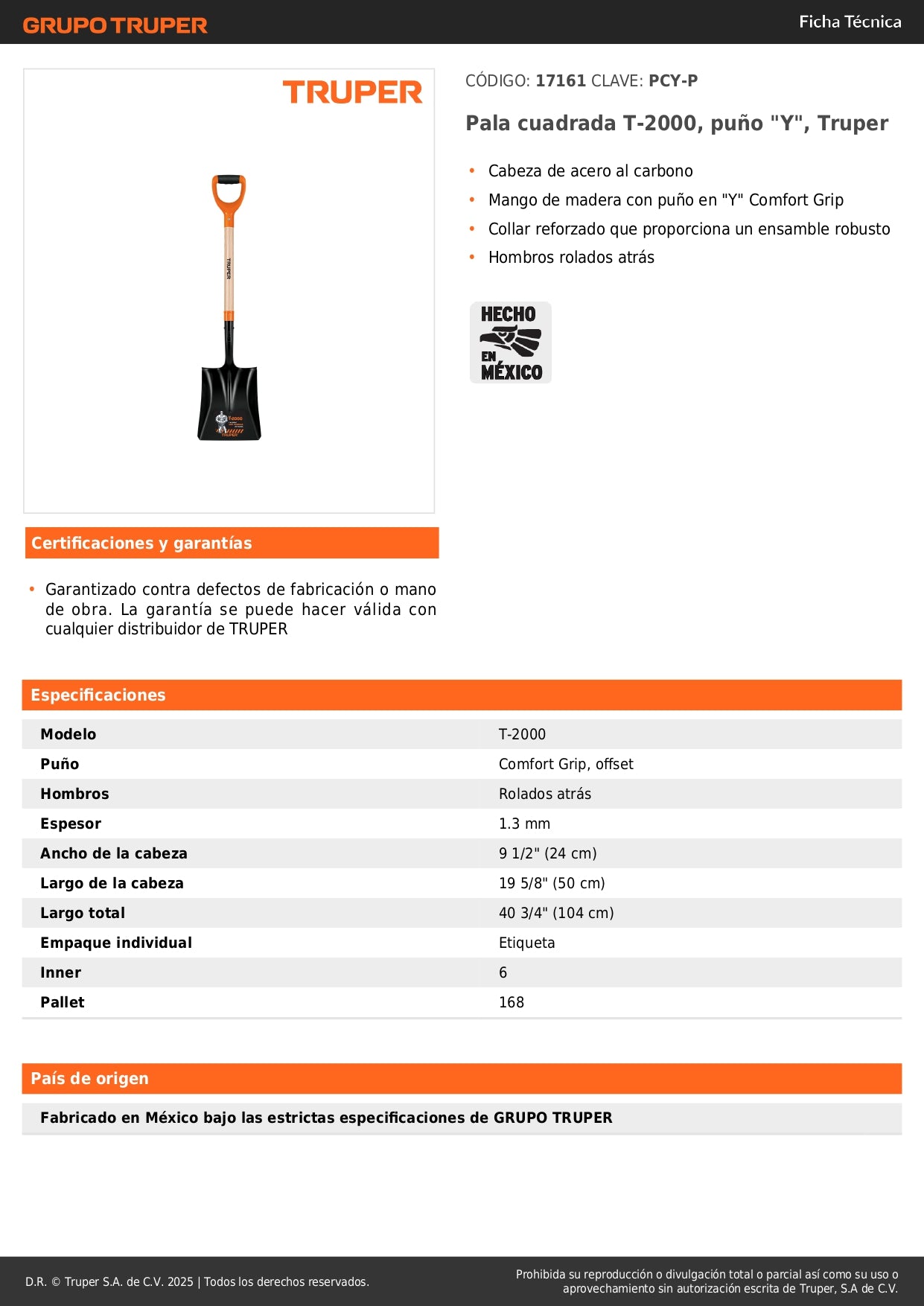 La pala cuadrada Truper T-2000 es la herramienta ideal para trabajos de excavación, construcción y albañilería profesional. Fabricada con acero al carbono reforzado, garantiza máxima durabilidad y resistencia en las condiciones más exigentes.