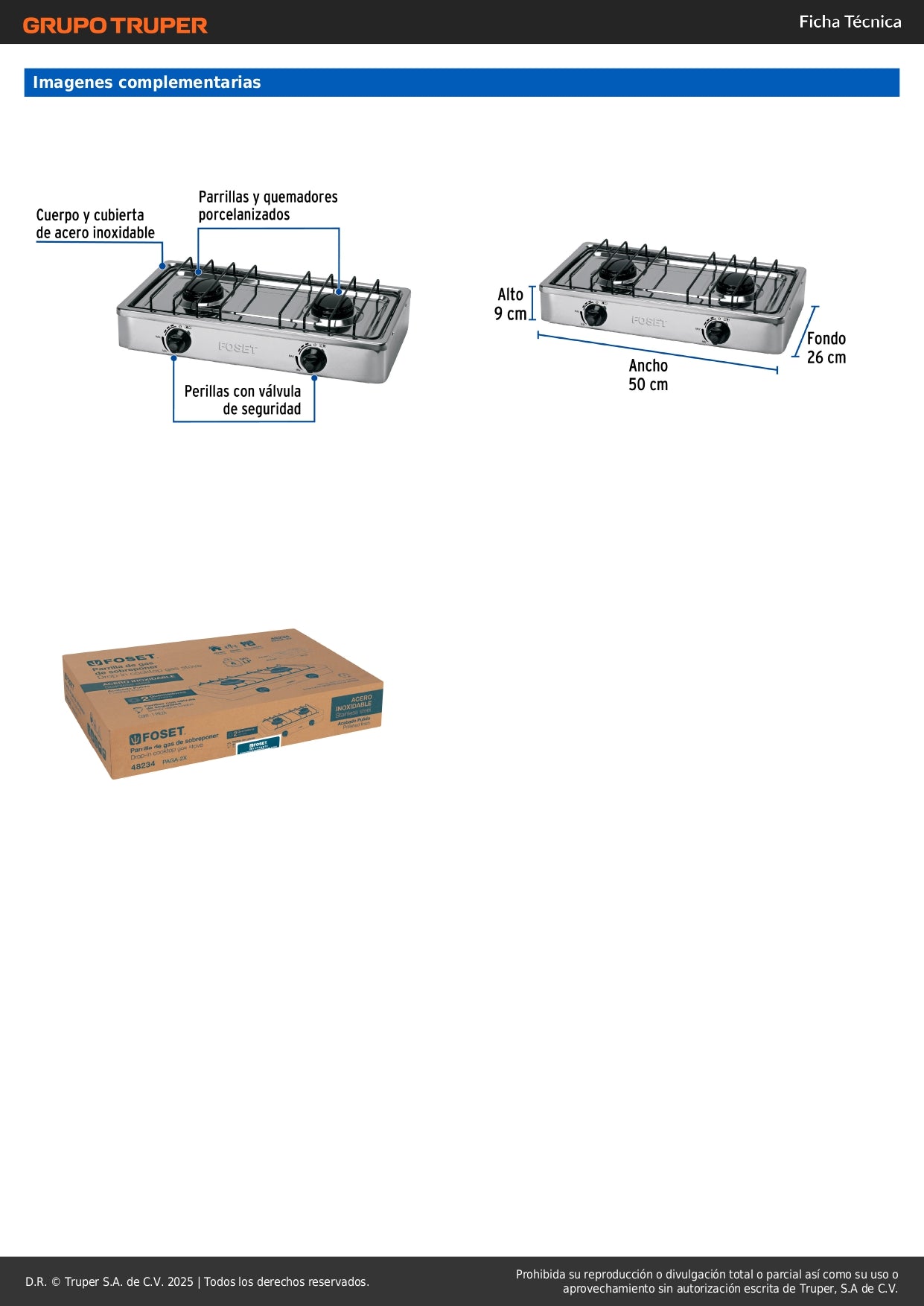 Descubre la parrilla de gas sobreponer FOSET con 2 quemadores de acero inoxidable, diseñada para ofrecer durabilidad y rendimiento excepcional en tu cocina o área de asado.