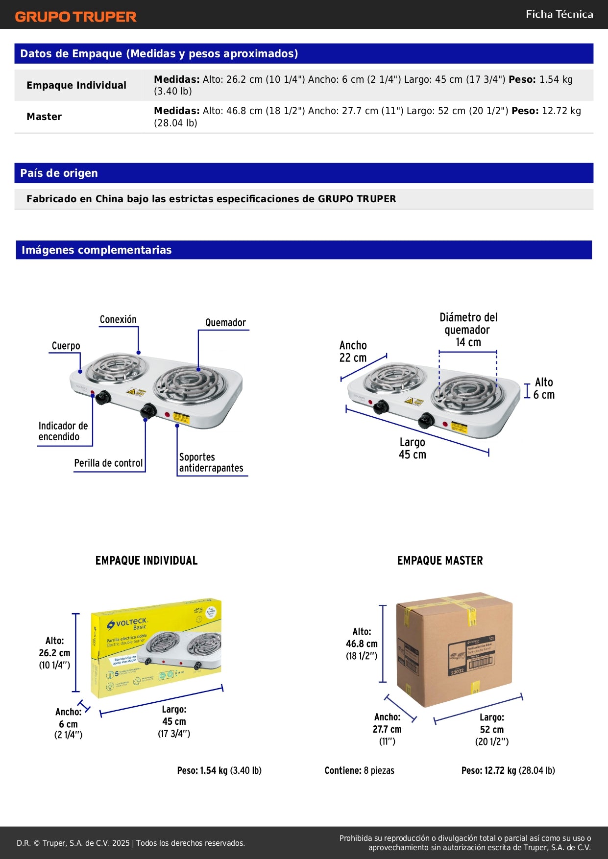 Parrilla Eléctrica 2 Quemadores Espiral BASIC PAEL-2CP VOLTECK®