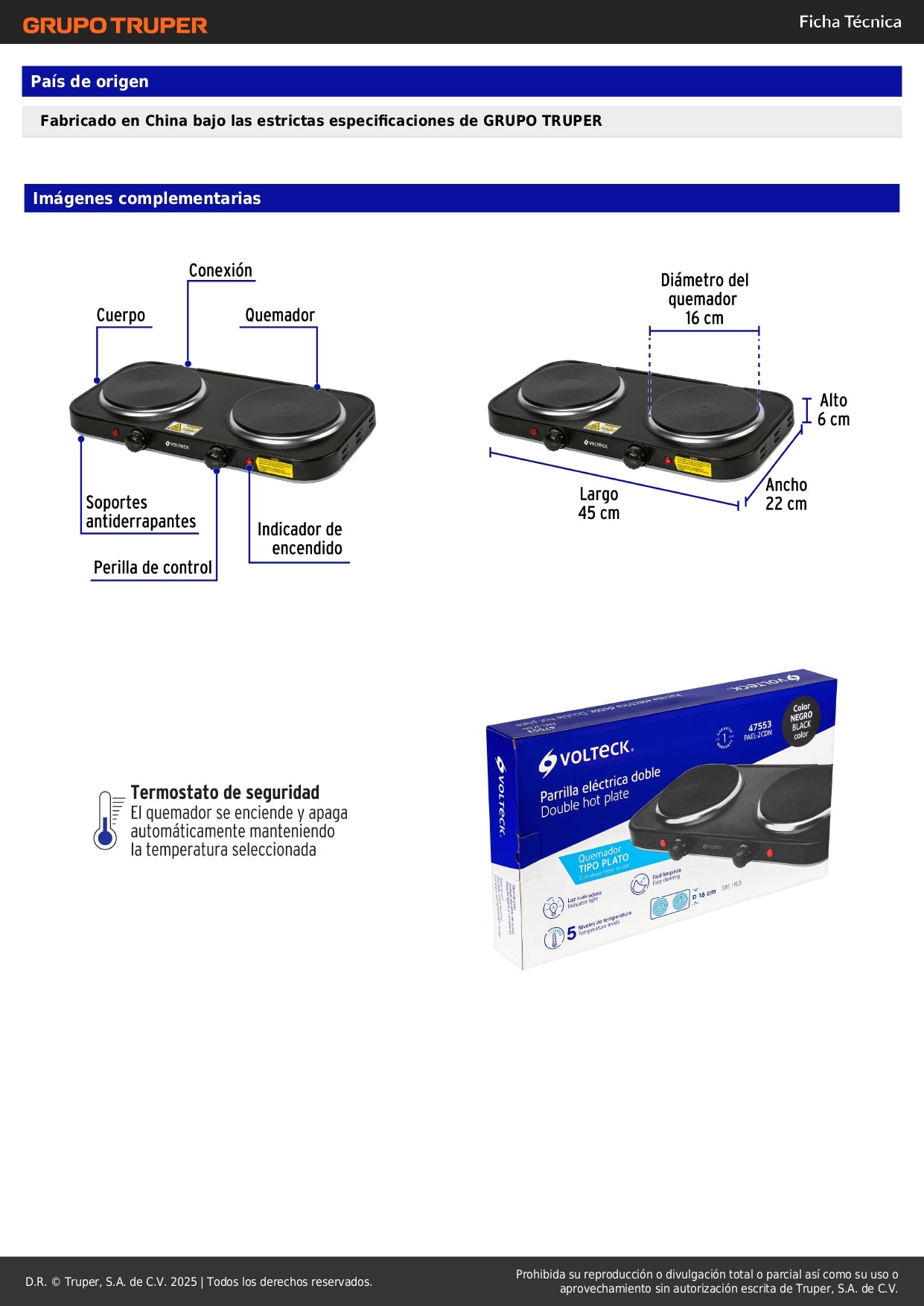 Descubre la parrilla eléctrica VOLTECK PAEL-2CDN con 2 quemadores de disco que revolucionará tu forma de cocinar. Ideal para cocina sin gas, perfecta para hogares, departamentos, oficinas y espacios donde necesitas una solución de cocción segura y eficiente.