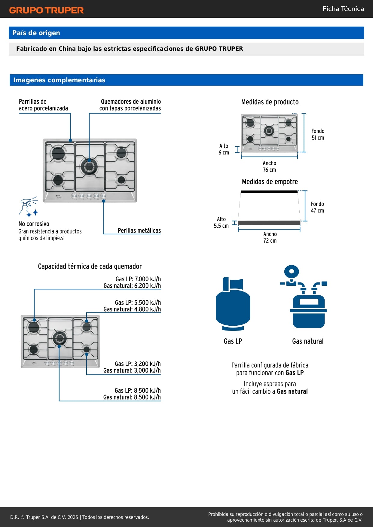 - Número de quemadores: 5 (incluye 1 doble flama)