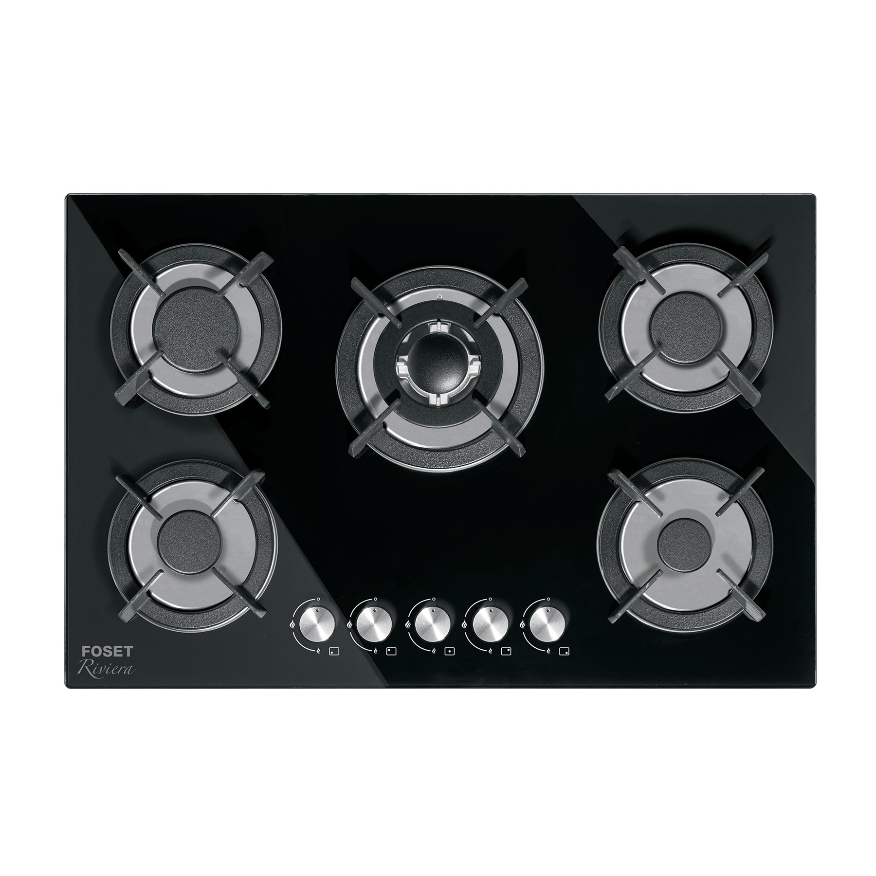 Parrilla Gas Empotrable 75cm RIVIERA - 5 Quemadores Vidrio Negro con Encendido Electrónico y Doble Flama Premium