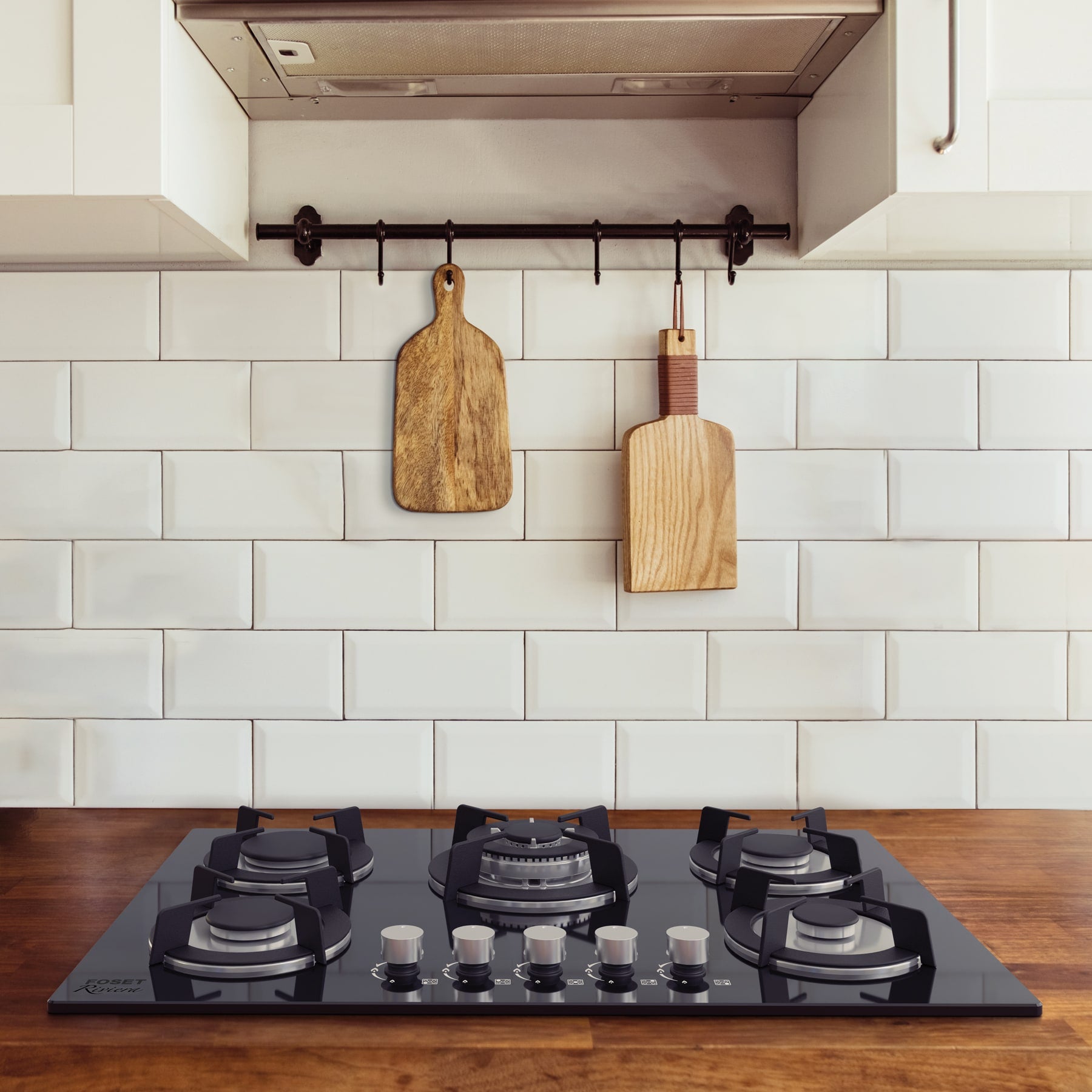 Parrilla Gas Empotrable 90cm RIVIERA - 5 Quemadores Vidrio Negro con Encendido Electrónico y Doble Flama Profesional