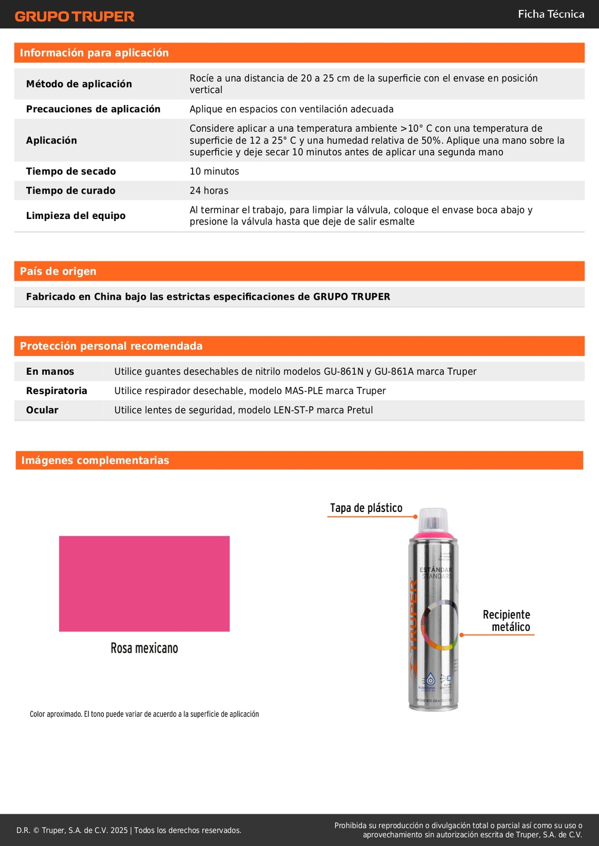 Pintura Aerosol Rosa Mexicano 400ml PA-RM - Anticorrosión Secado Rápido para Metal Madera Plástico