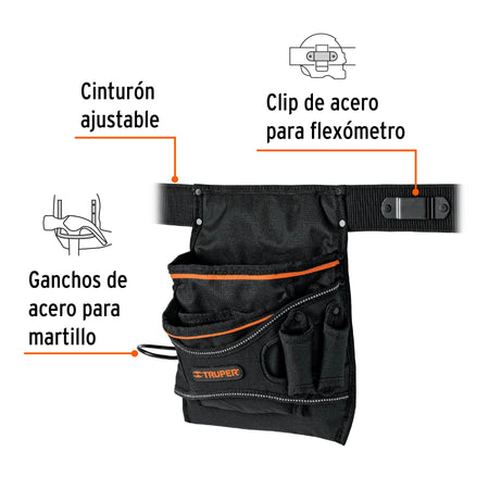 Porta Herramientas Profesional Truper 13 Compartimentos - Poliéster 600D Resistente al Agua - Organiza y Protege Herramientas