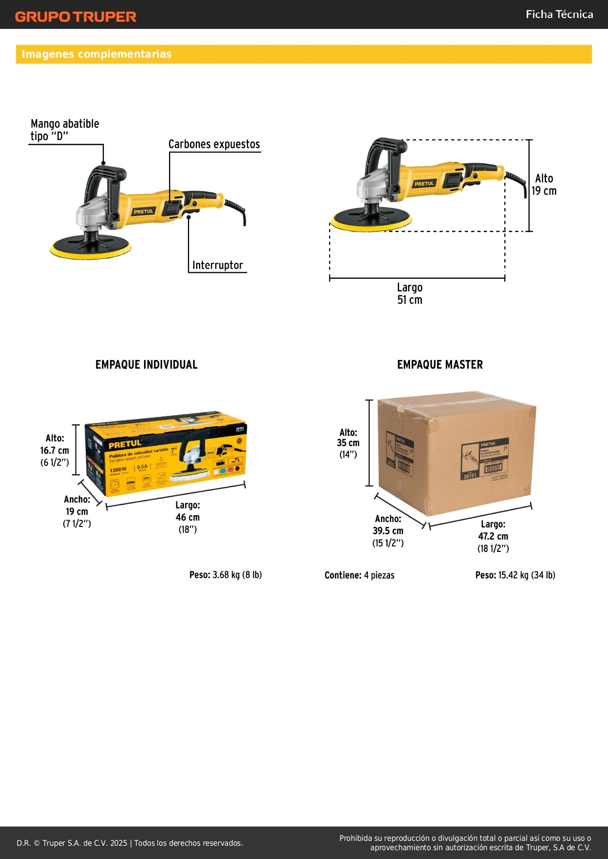Pulidora Rotativa Profesional PRETUL 7 Pulgadas - Potencia y Precisión para Acabados Perfectos