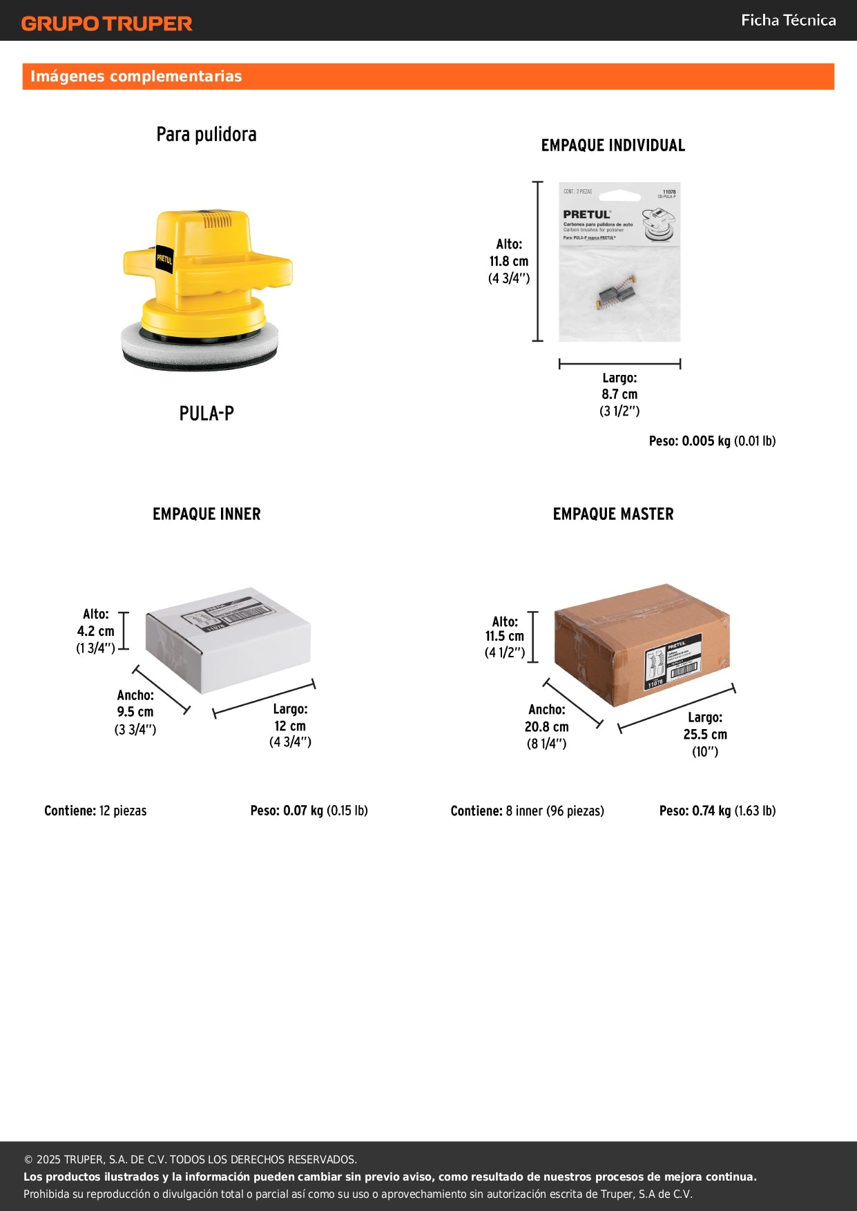 Incluye: Pulidora roto-orbital, manual de usuario y garantía PRETUL.