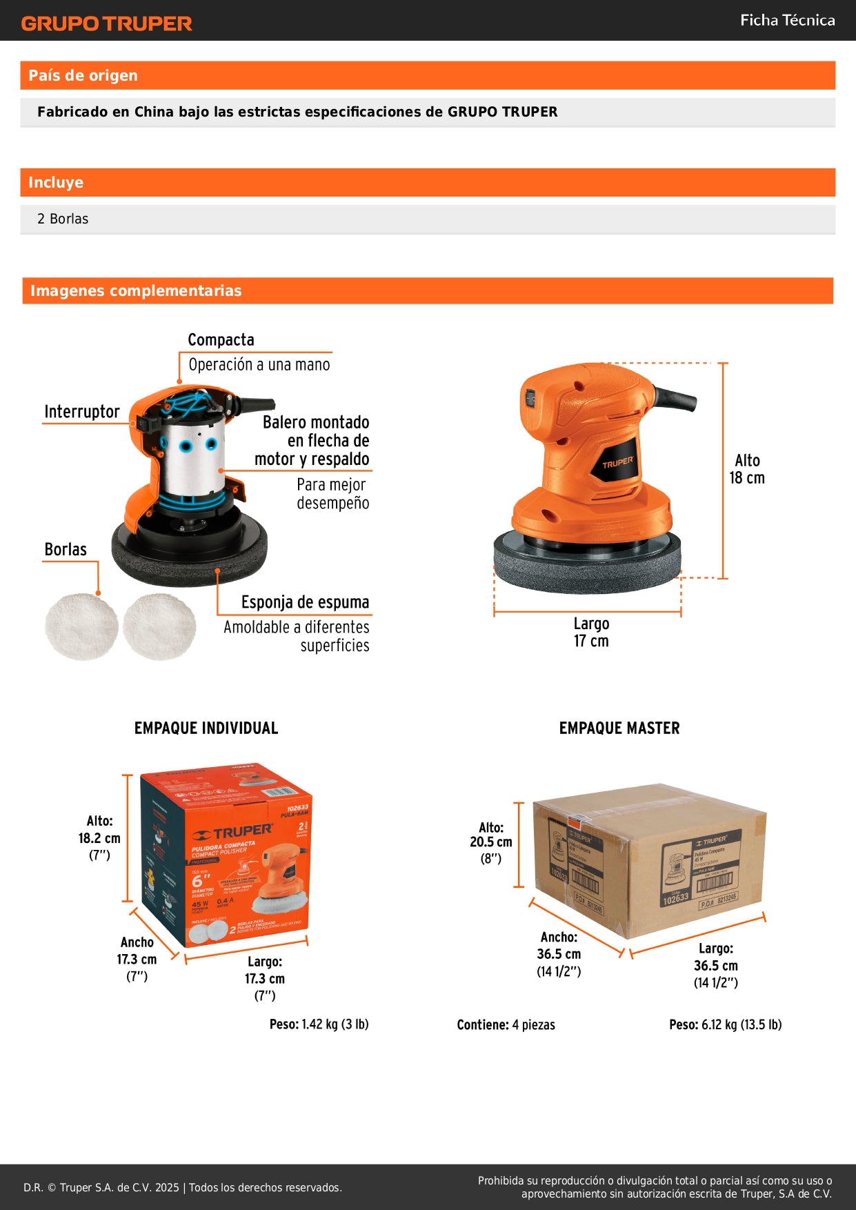 Pulidora Roto-Orbital TRUPER PRO 6" - Acabado Profesional sin Hologramas